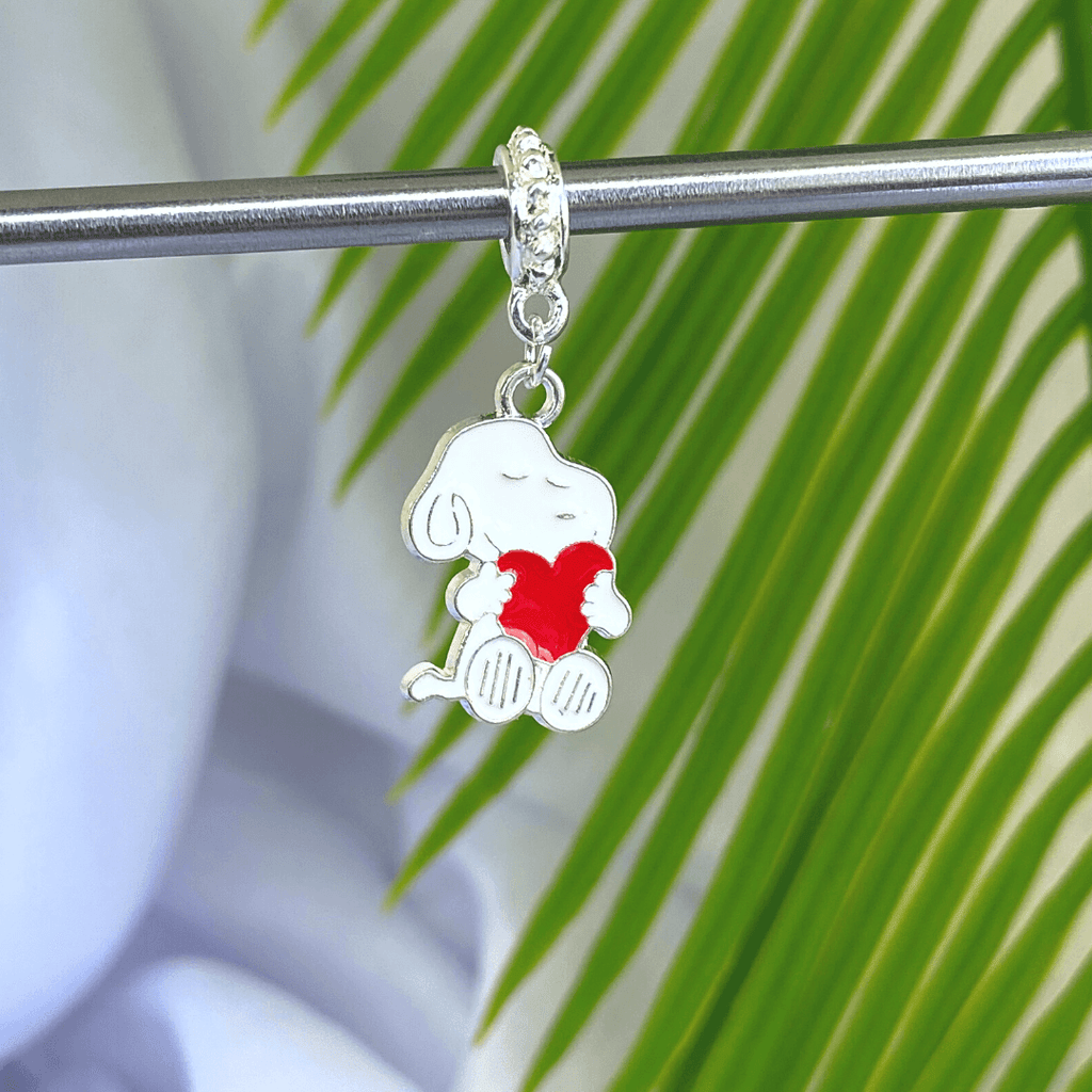 Berloque Banhado a Prata Snoopy Coração - Prata