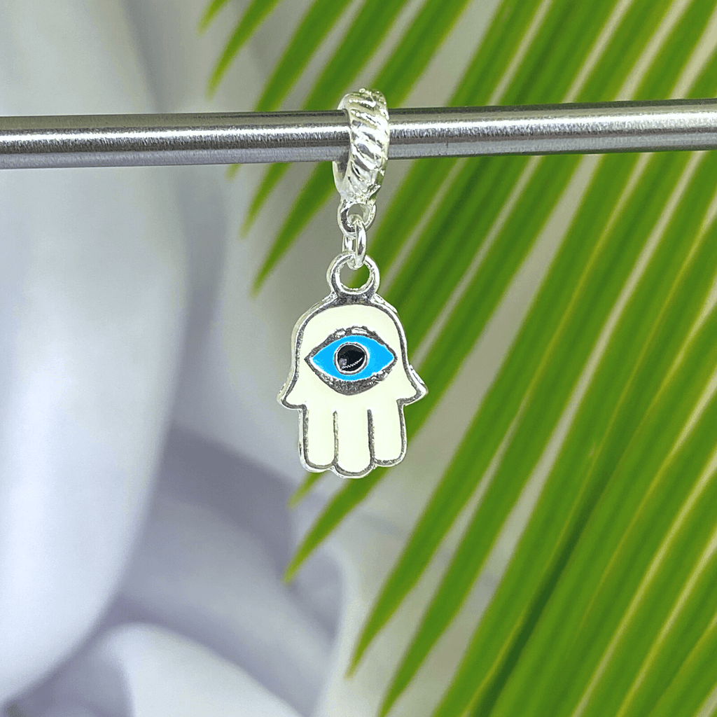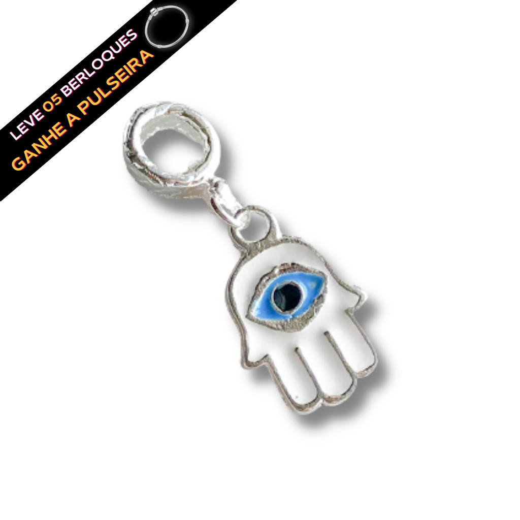 Berloque Pendurado Mão de Fátima Olho Grego - Prata