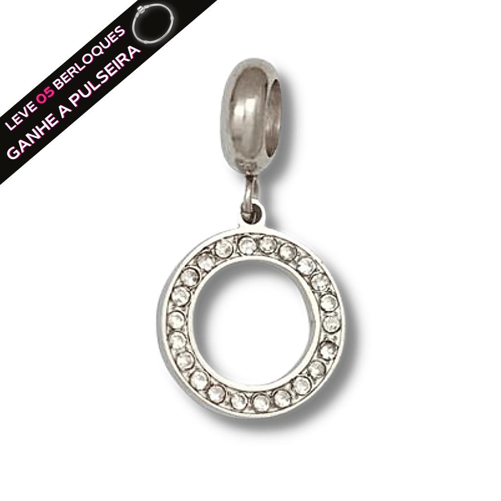 Berloque Pendurado Círculo Cravejado - Aço Inox