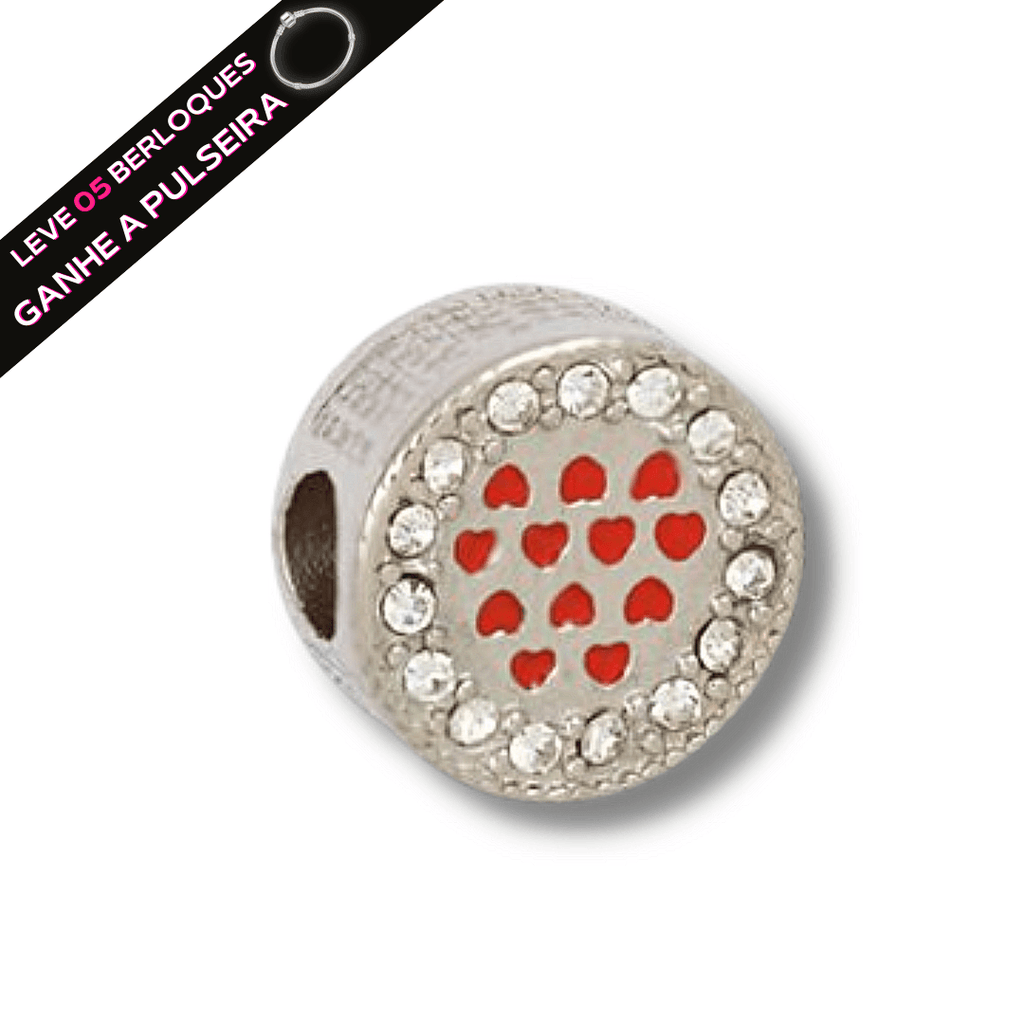 Berloque Separador Murano Corações - Aço Inox