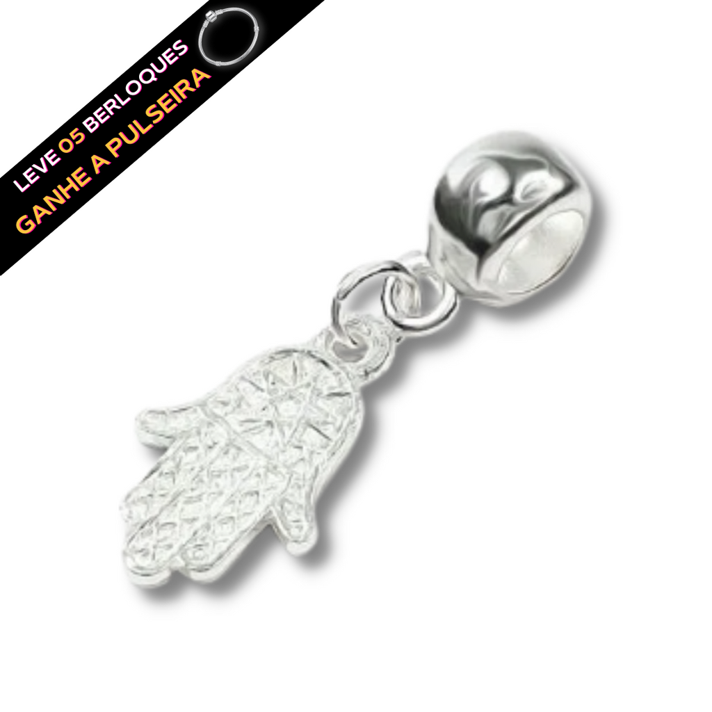 Berloque Banhado a Prata Mão Hamsa - Prata
