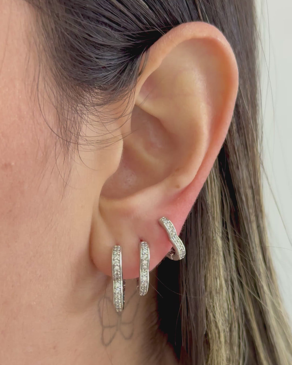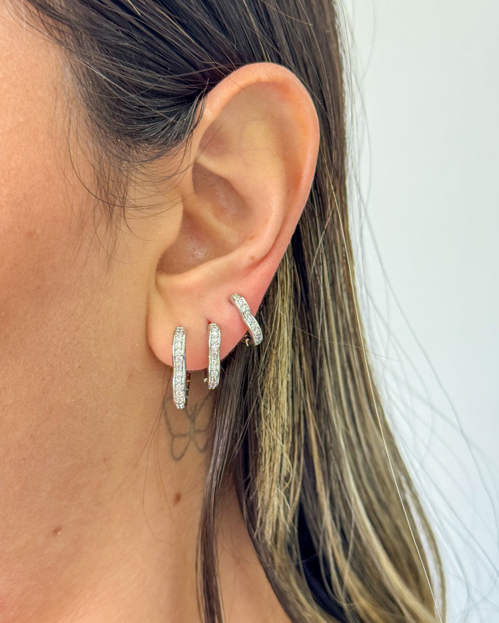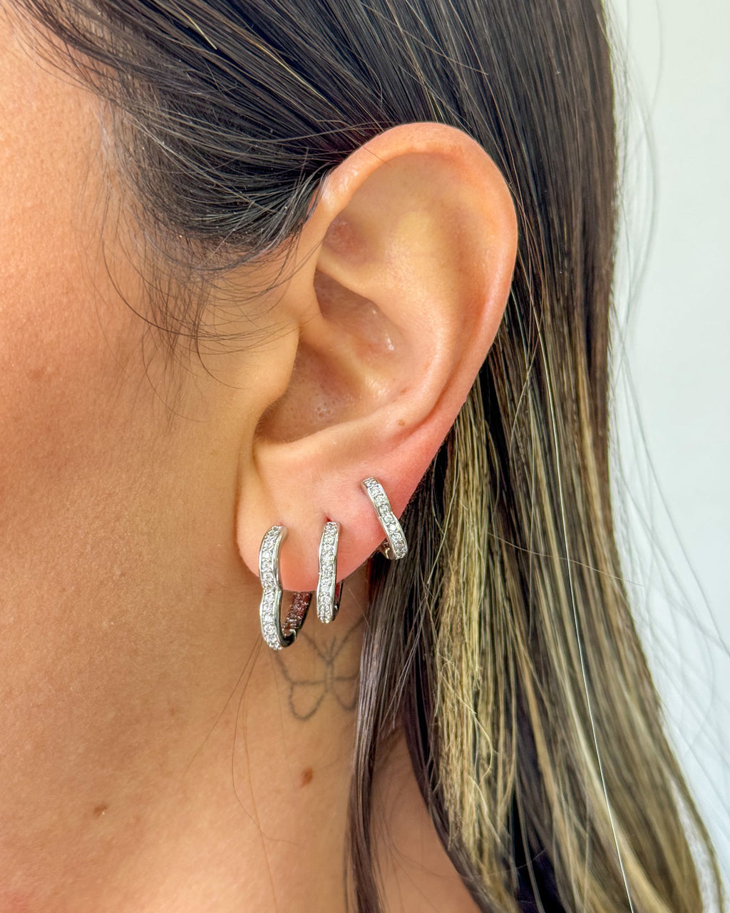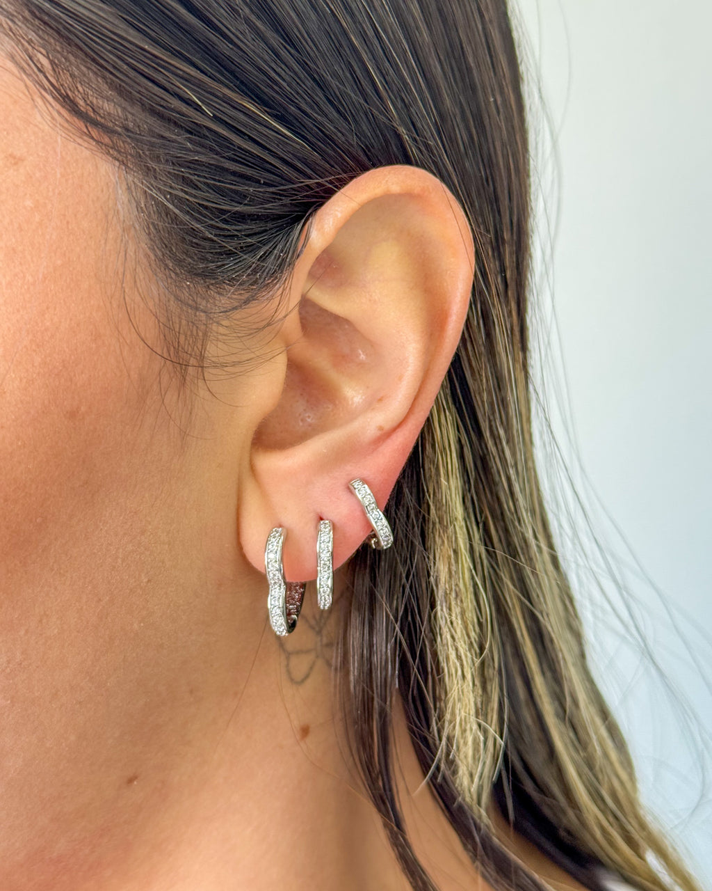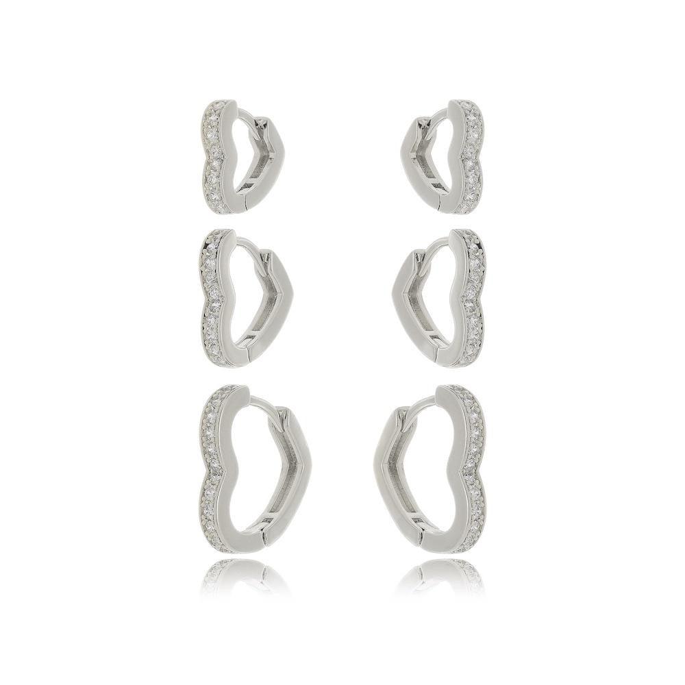 Trio de Brincos Coração Cravejado - Semijoia Folheada em Prata