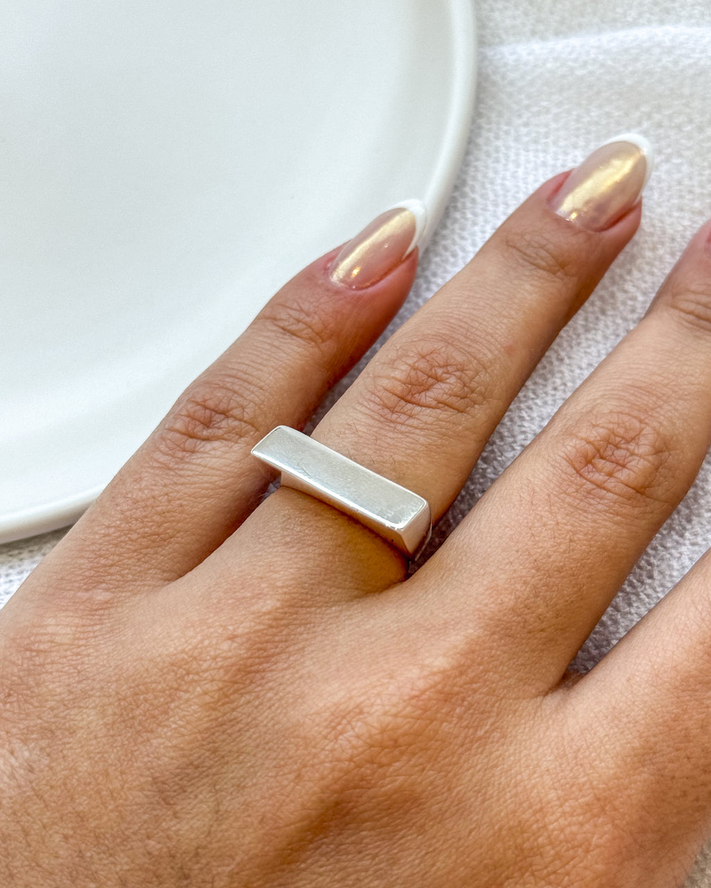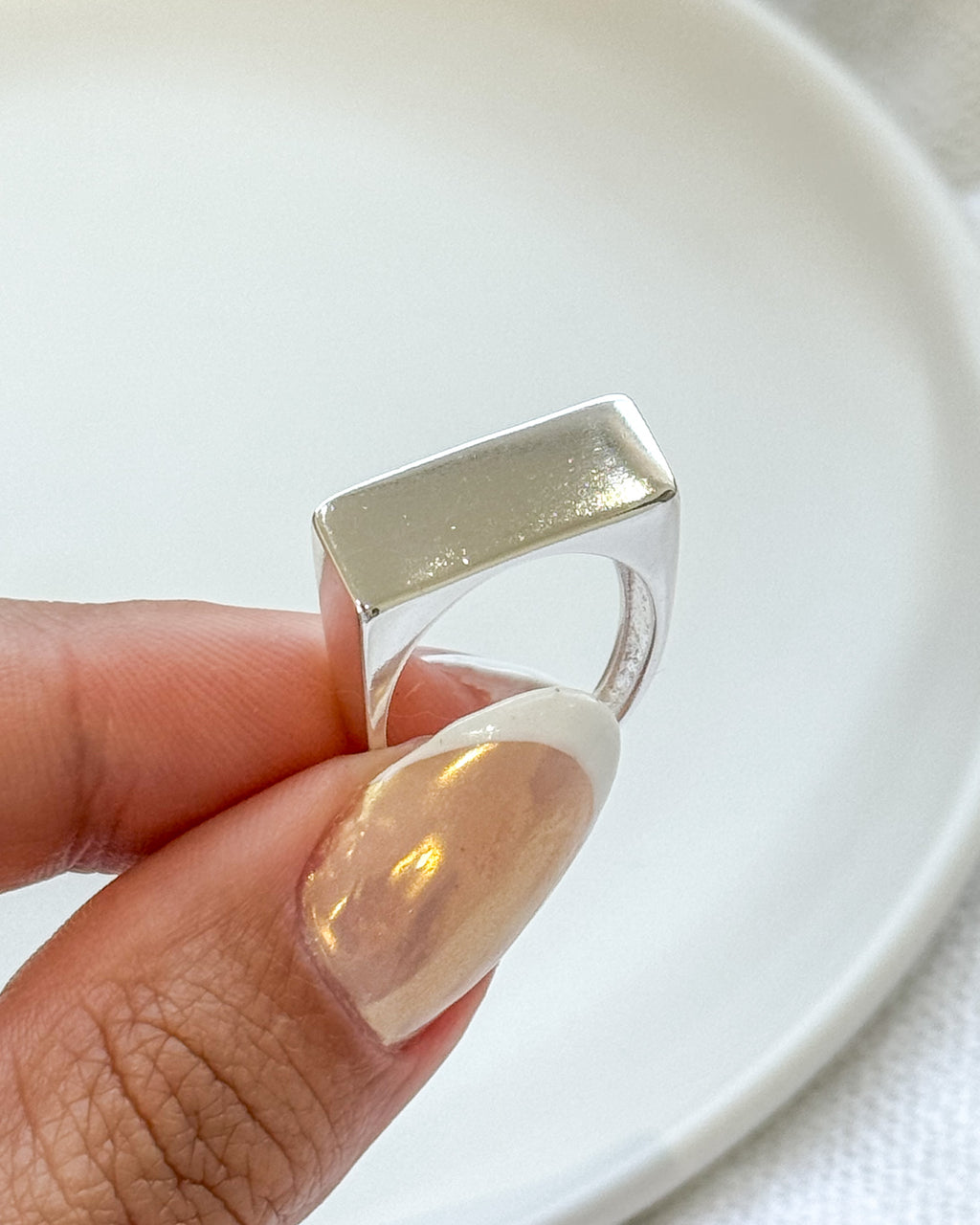 Anel Regulável Base Quadrada - Semijoia Banhado a Prata