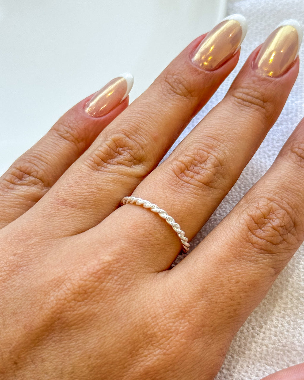 Anel Regulável Entrelace - Semijoia Banhado a Prata