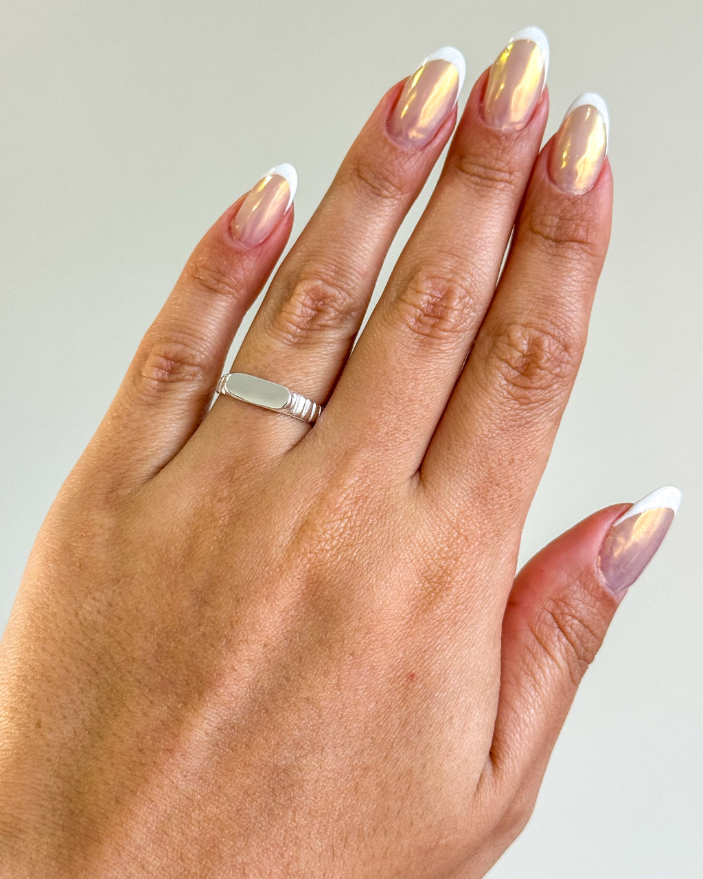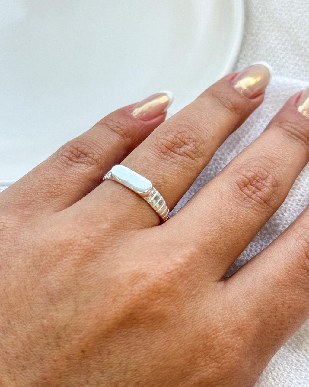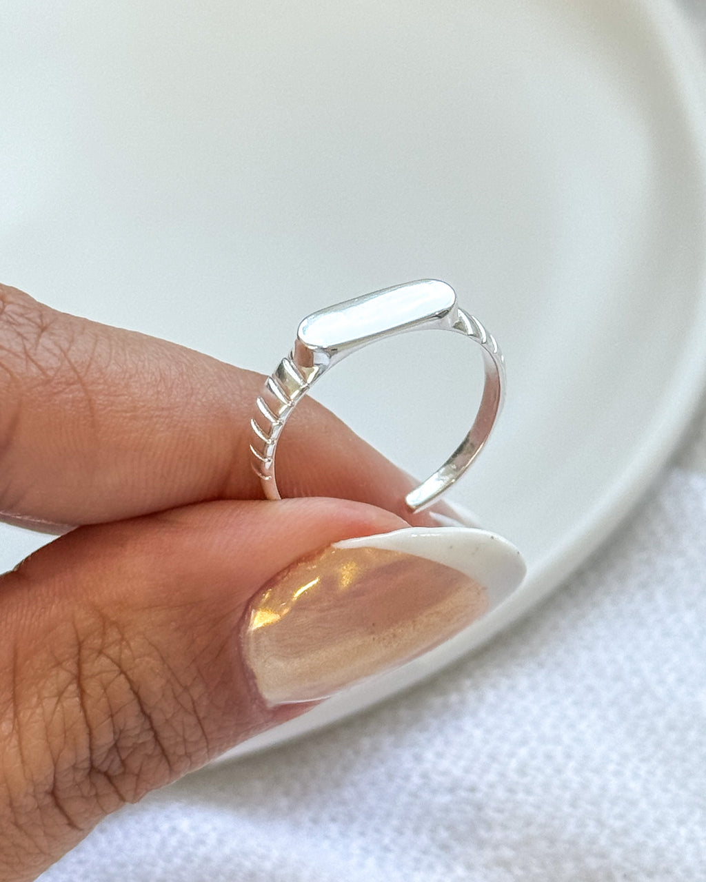 Anel Regulável Meio Canelado - Semijoia Banhado a Prata