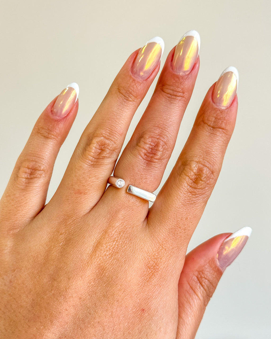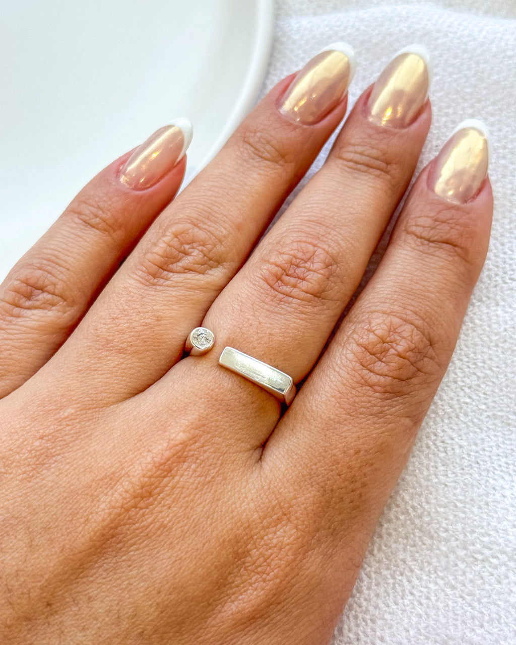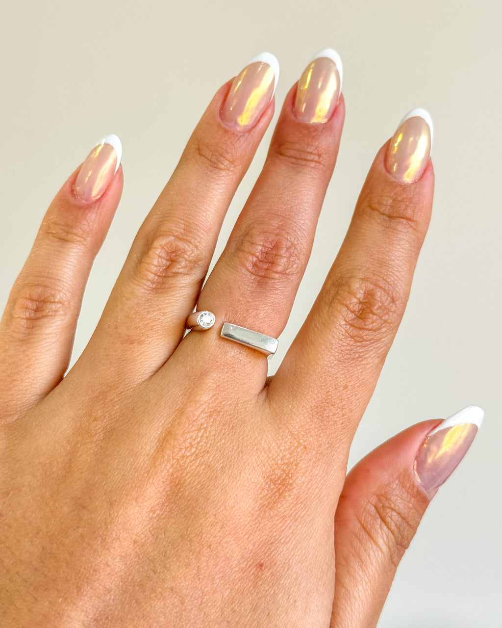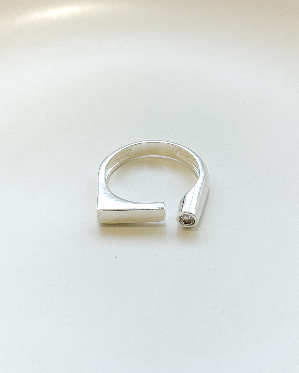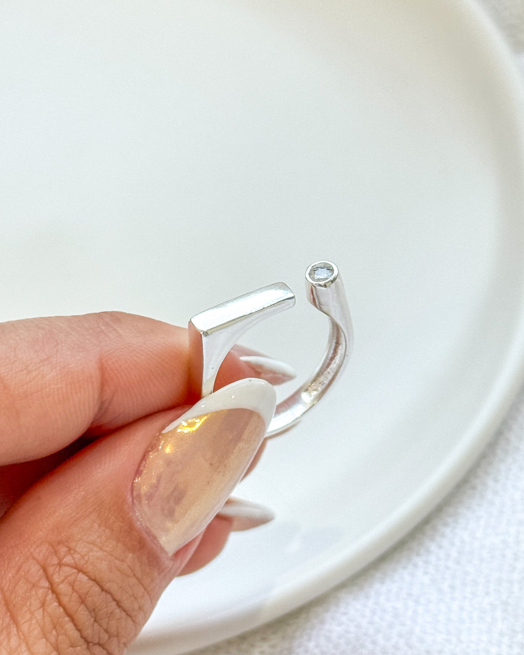 Anel Regulável Quadrado com Pedrinha - Semijoia Banhado a Prata