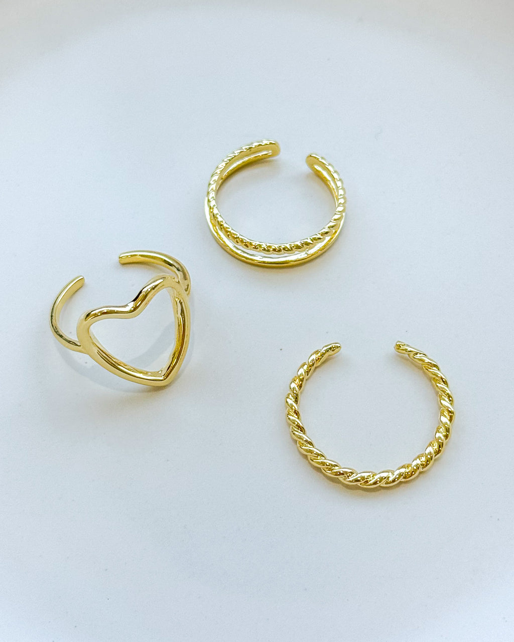 Kit Anéis Reguláveis Romântico - Semijoia Banhado em Ouro 18k