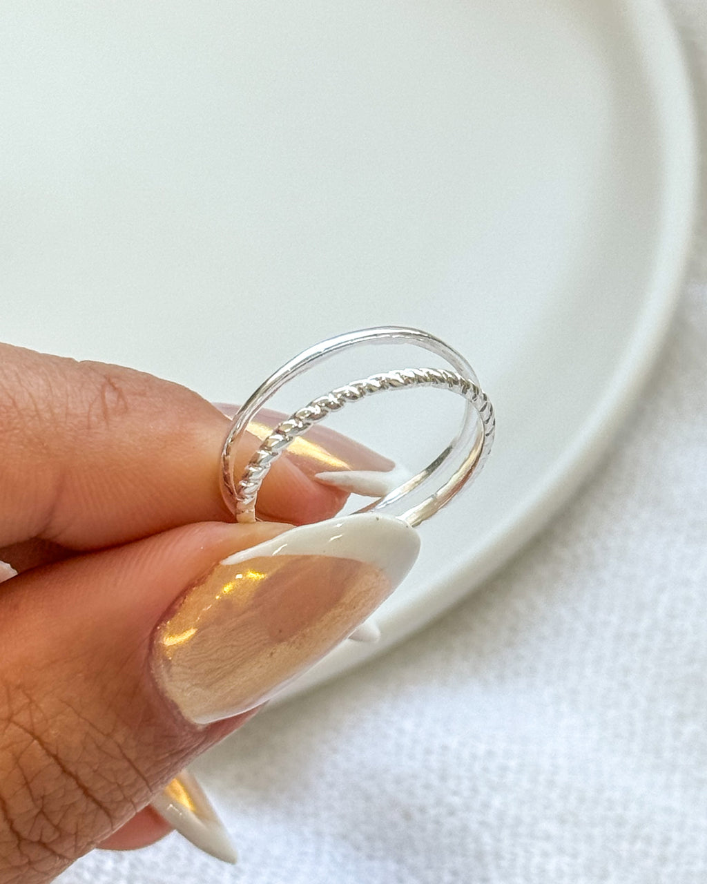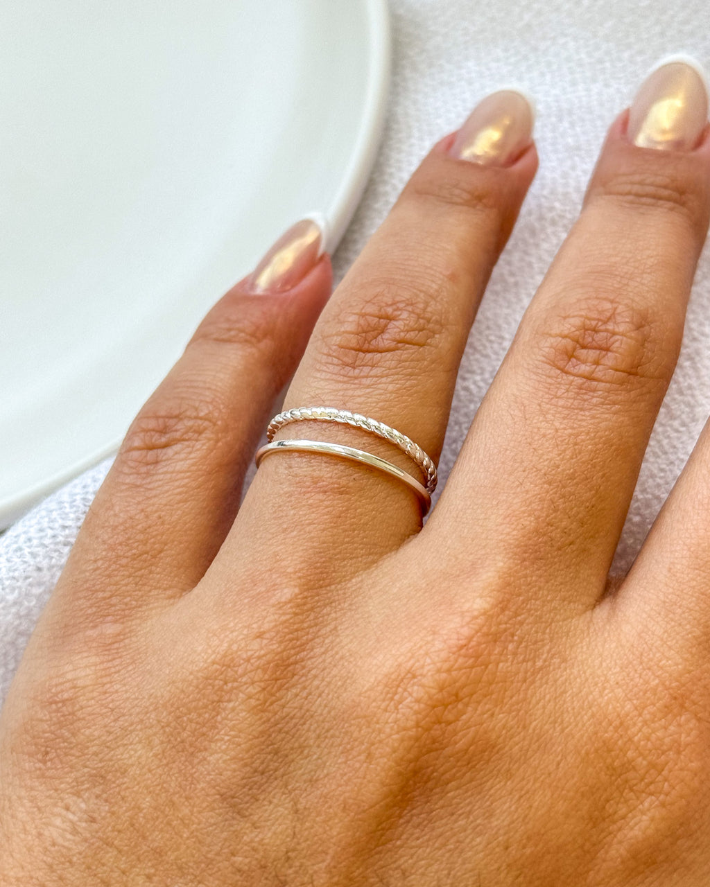 Anel Regulável Duplo Detalhado - Semijoia Banhado a Prata