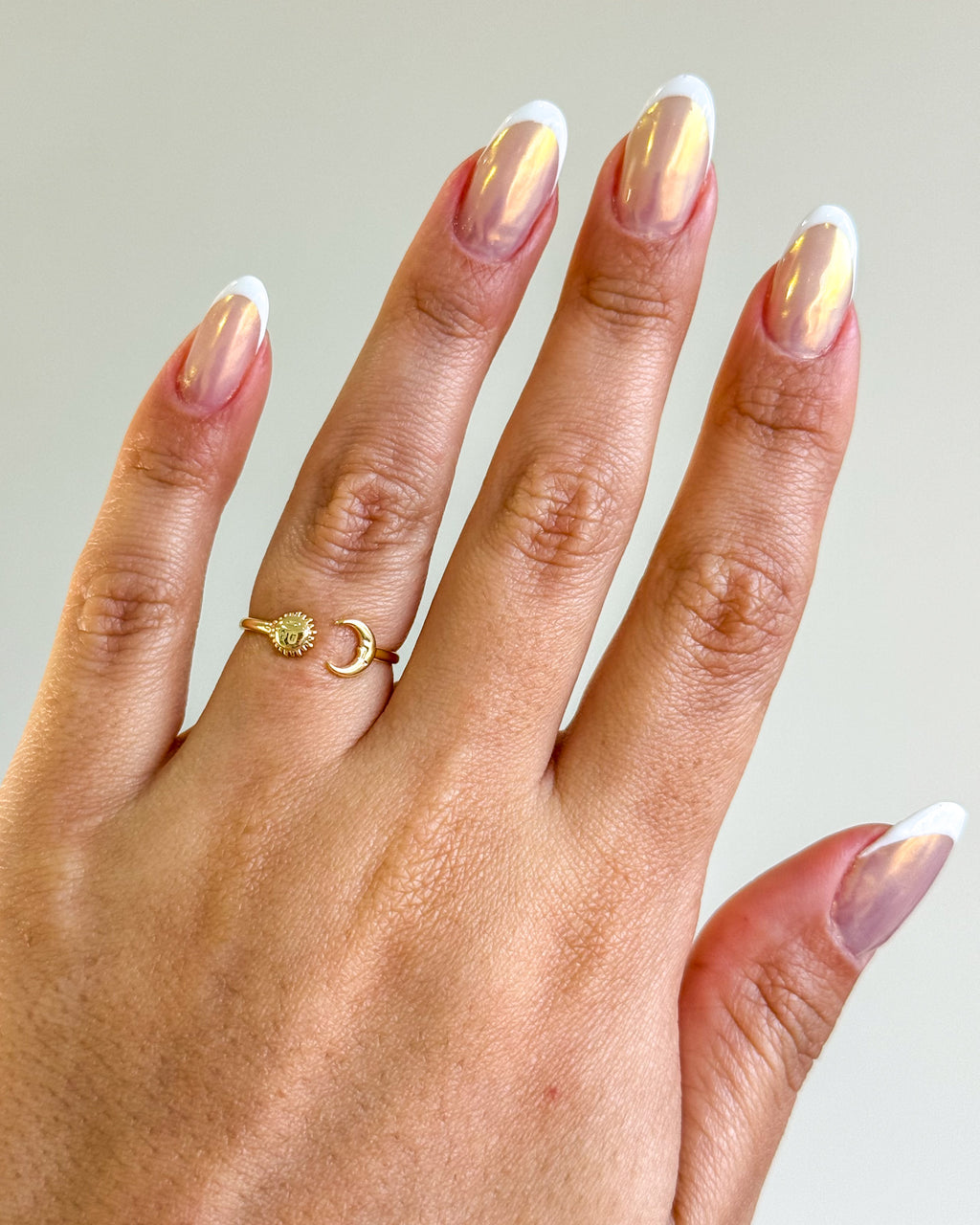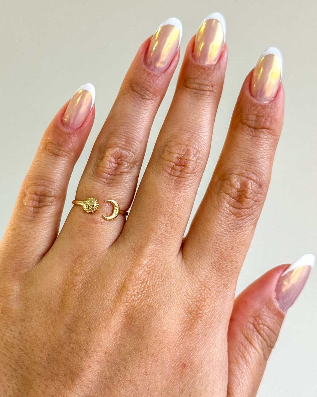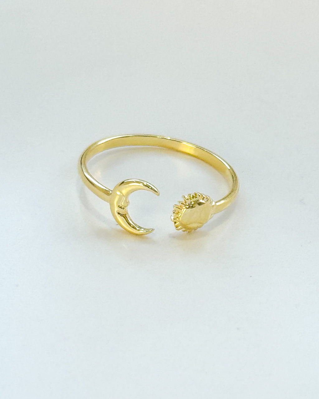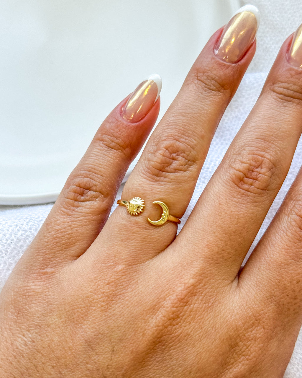 Anel Regulável Lua Sol - Semijoia Banhado em Ouro 18k