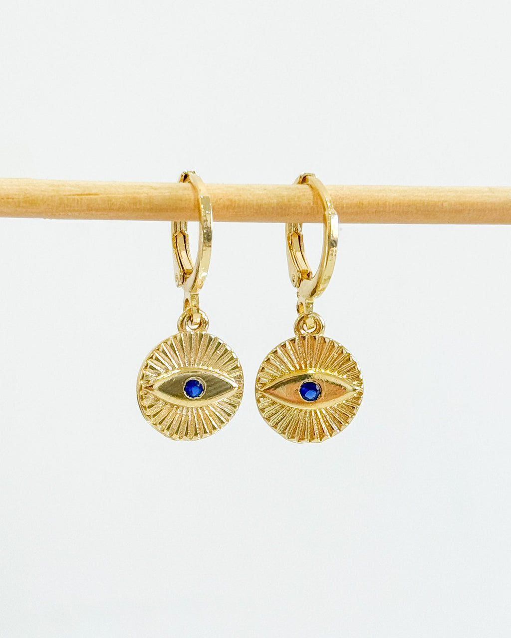 Argolinha com Pingente Medalha Olho Grego - Semijoia Banhado em Ouro 18k