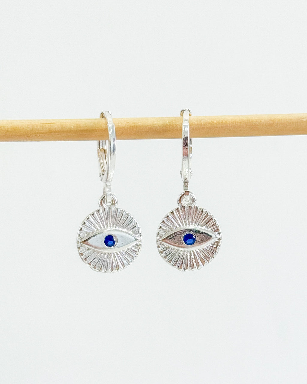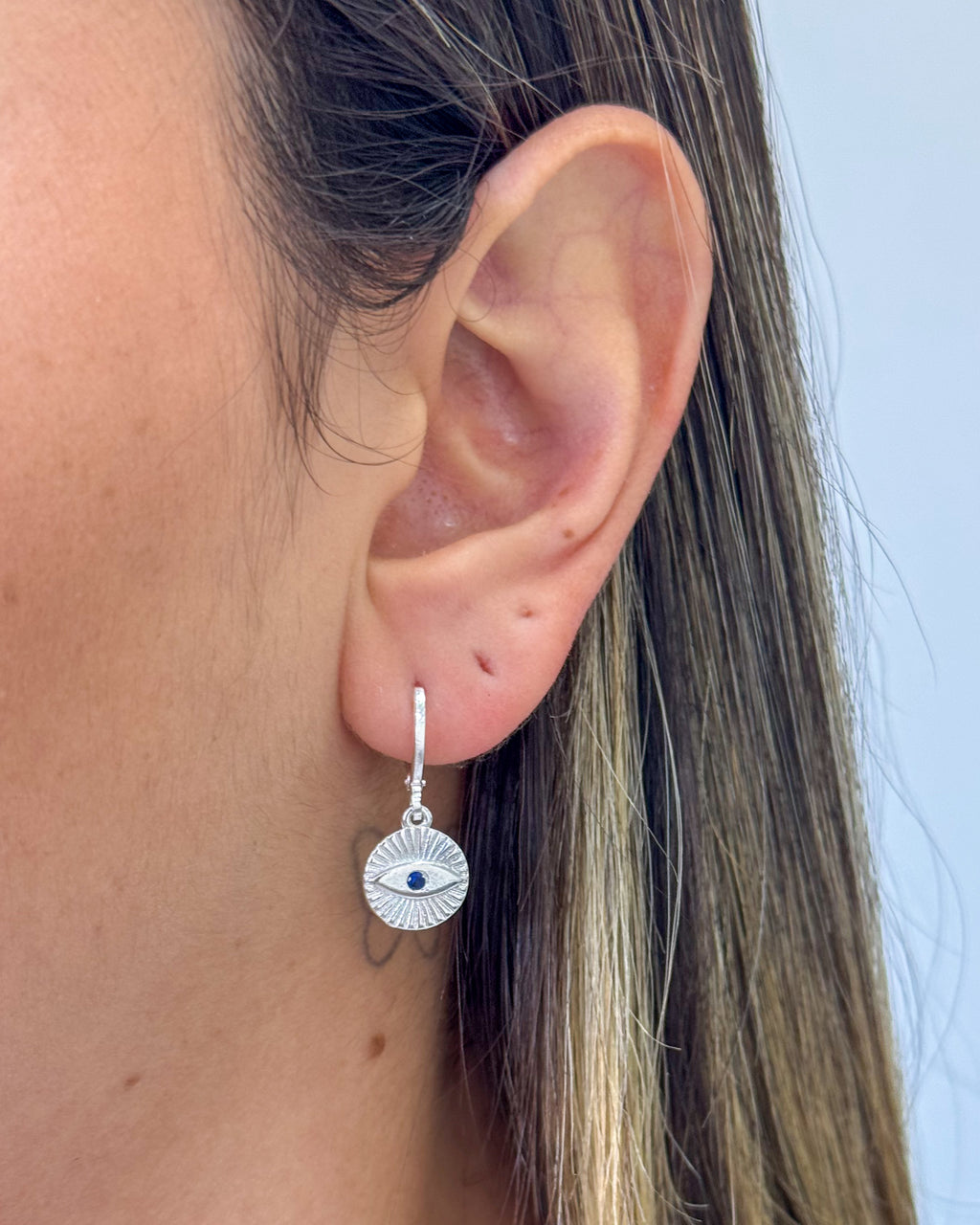 Argolinha com Pingente Medalha Olho Grego - Semijoia Banhado a Prata