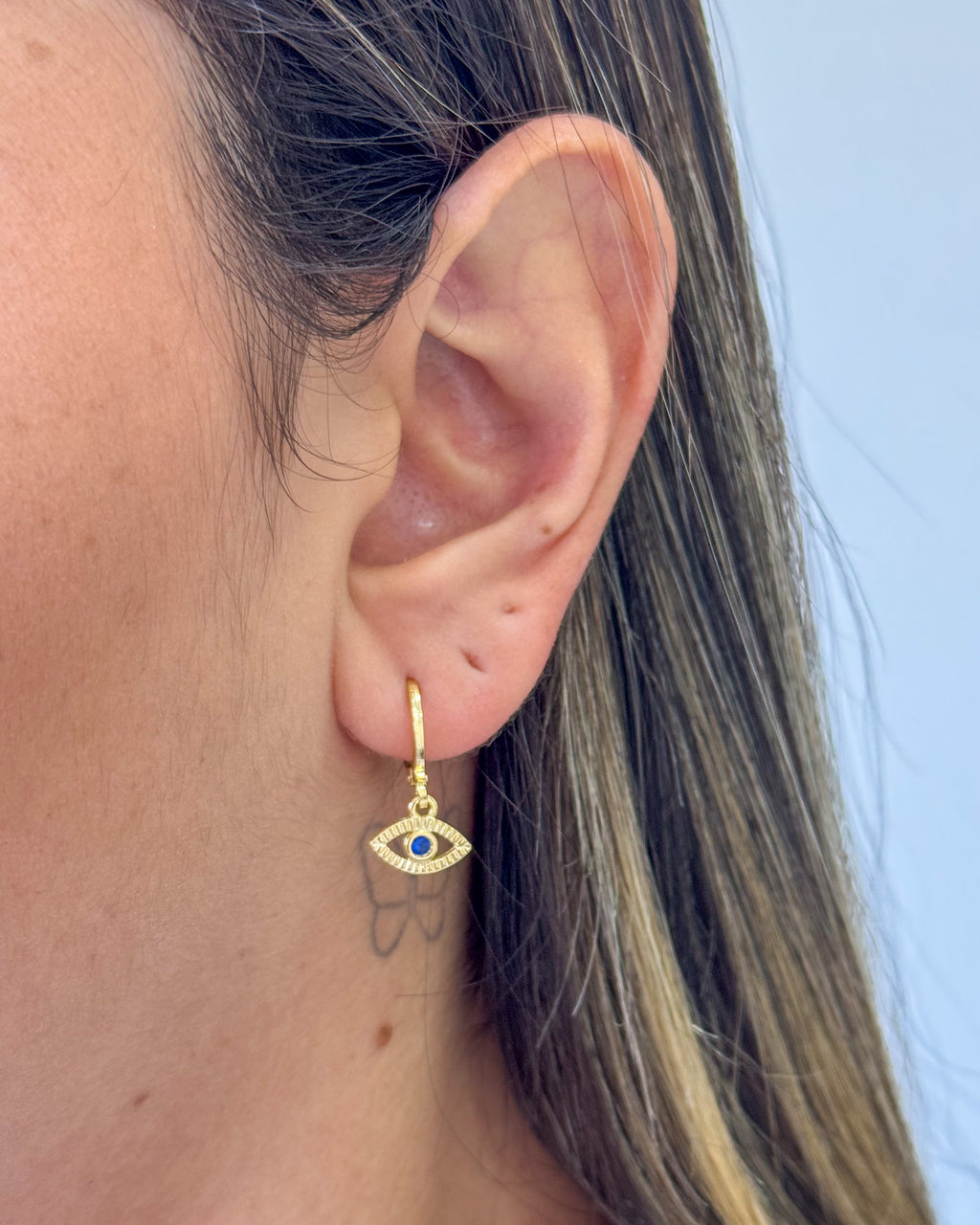 Argolinha com Pingente Olho Grego Vazado - Semijoia Banhado em Ouro 18k