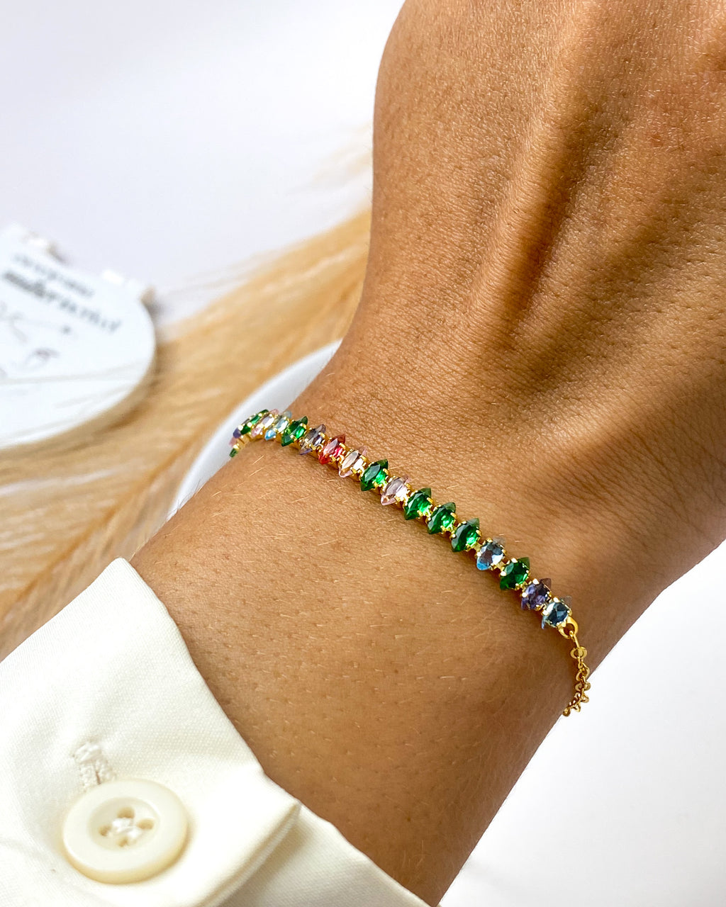Pulseira Zircônia Navete - Semijoia Folheada a Ouro 18k
