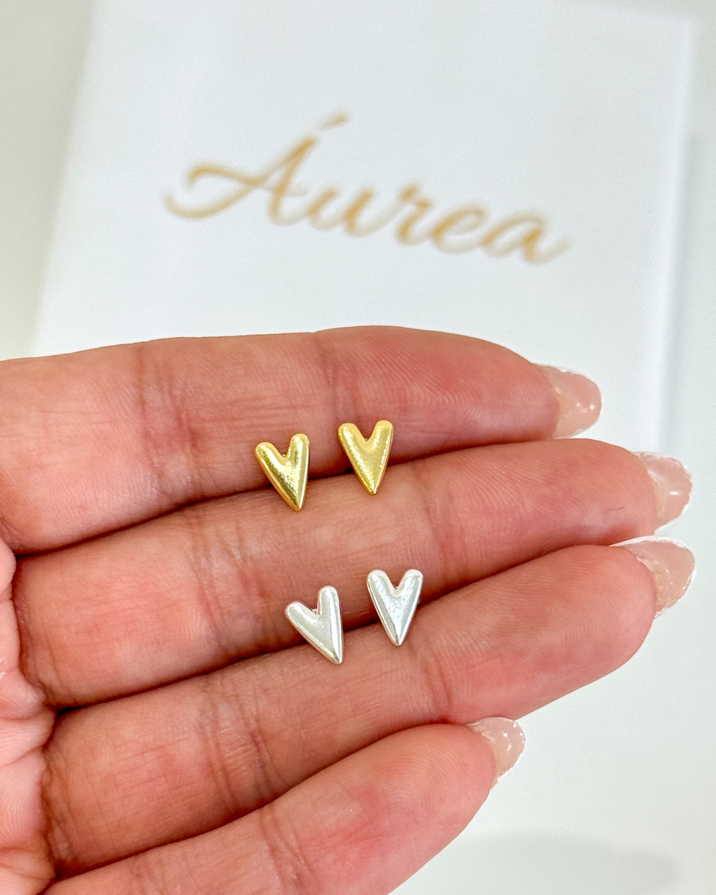 Brinco Coração Puxadinho - Semijoia Banhado em Ouro 18k