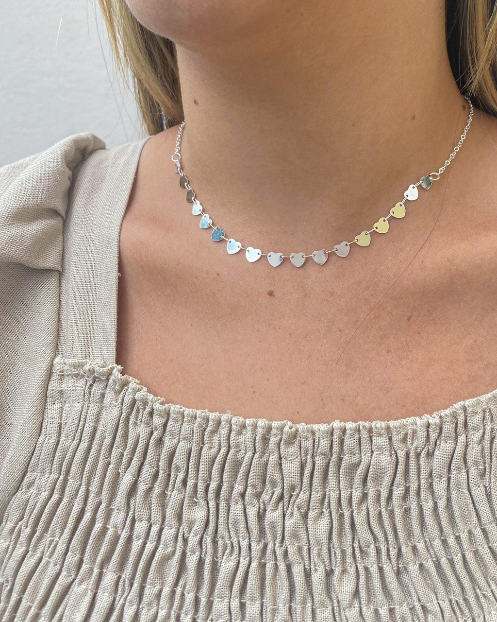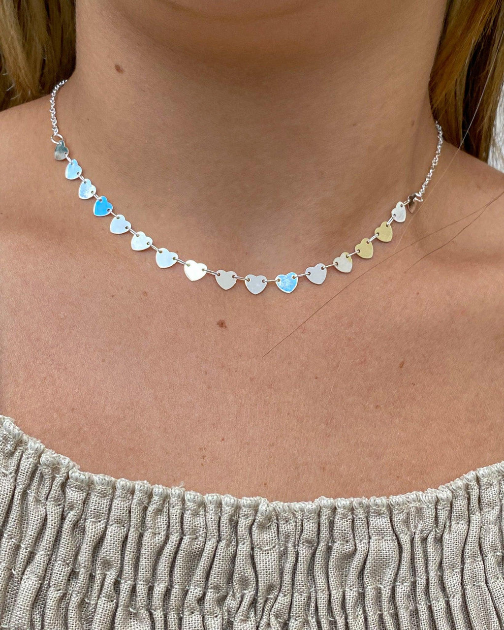 Colar Choker Coração Chapinha - Semijoia Folheada em Prata
