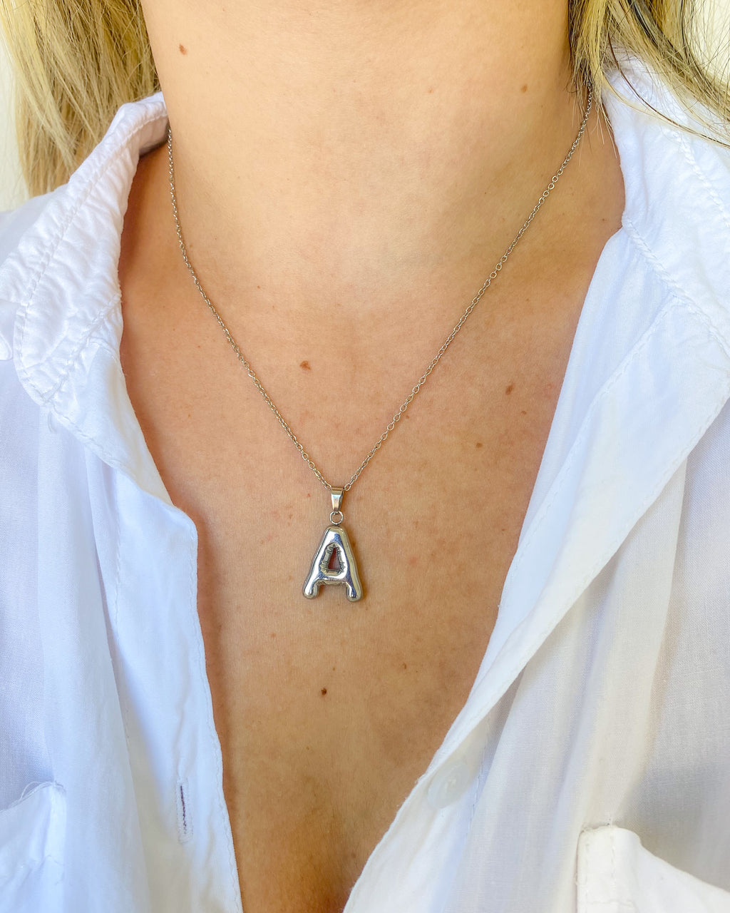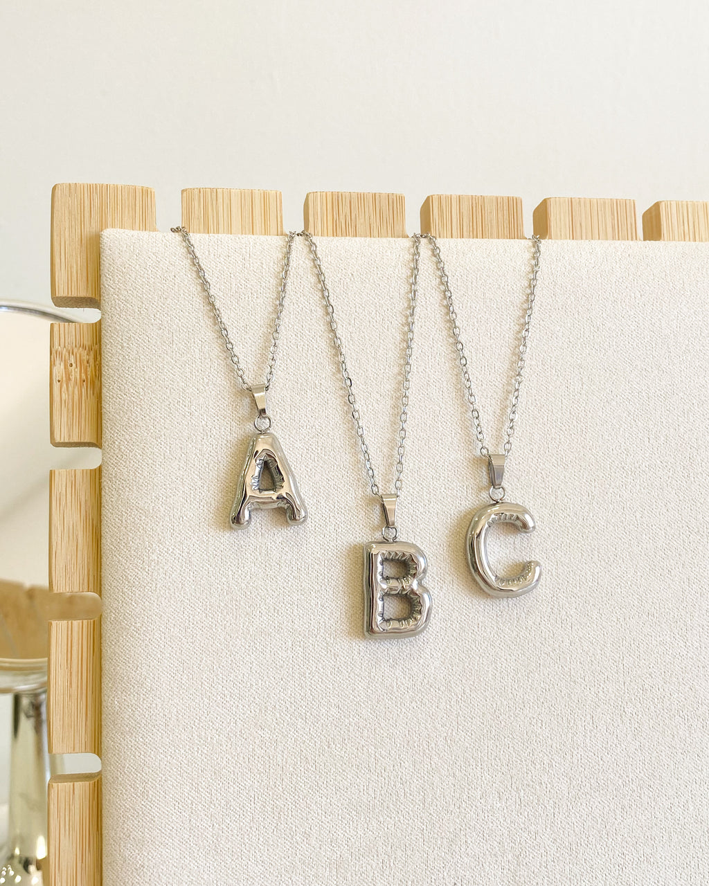 Colar Pingente Letra Balão Aço - Semijoia Folheada em Prata