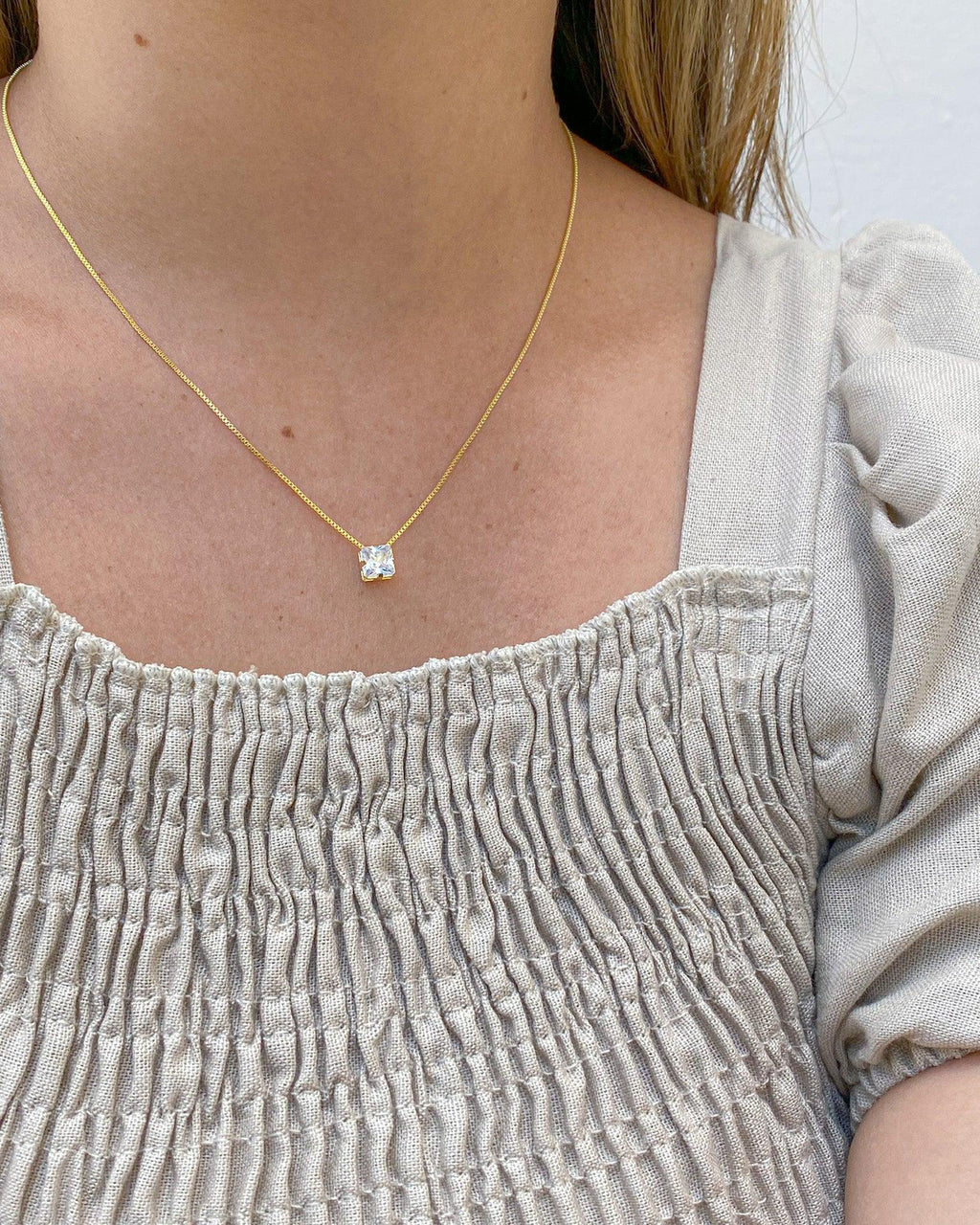 Colar Pingente Quadrado Zircônia - Semijoia Banhado em Ouro 18k