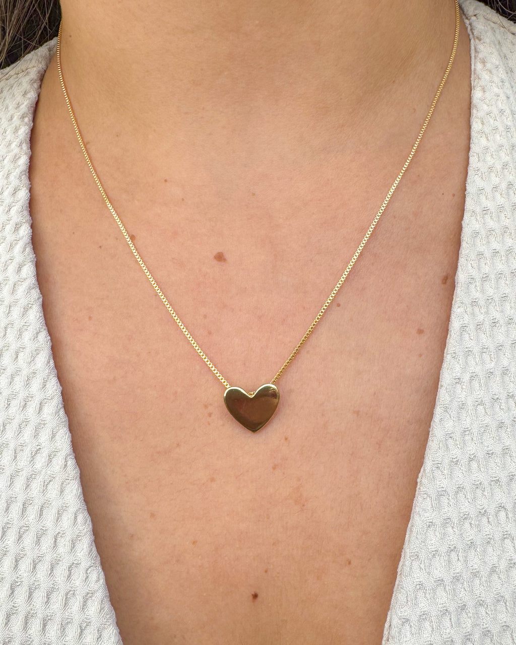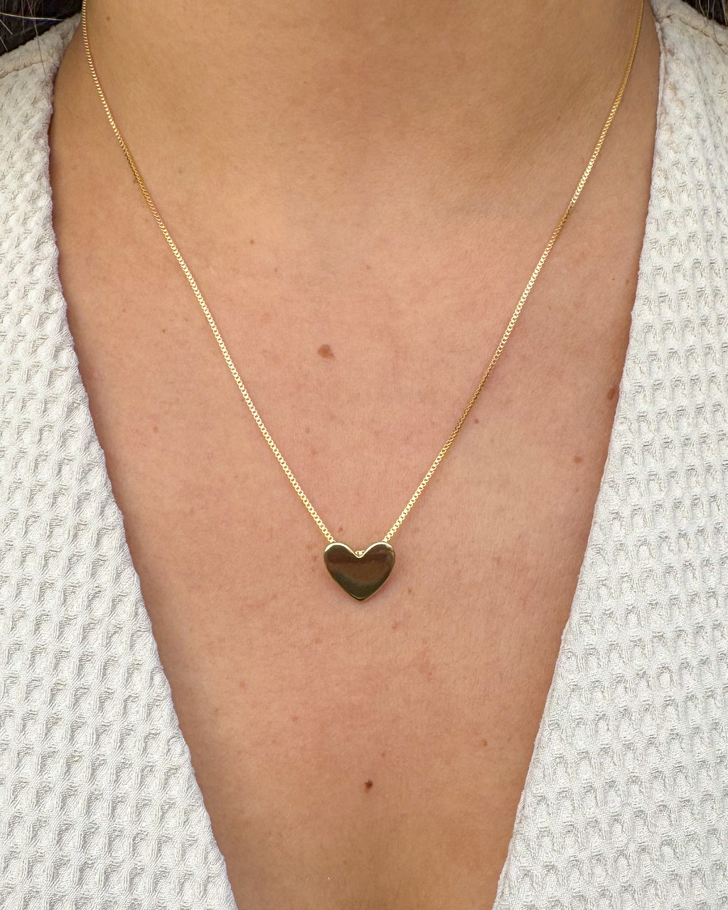 Colar Pingente Coração Liso - Semijoia Banhado em Ouro 18k