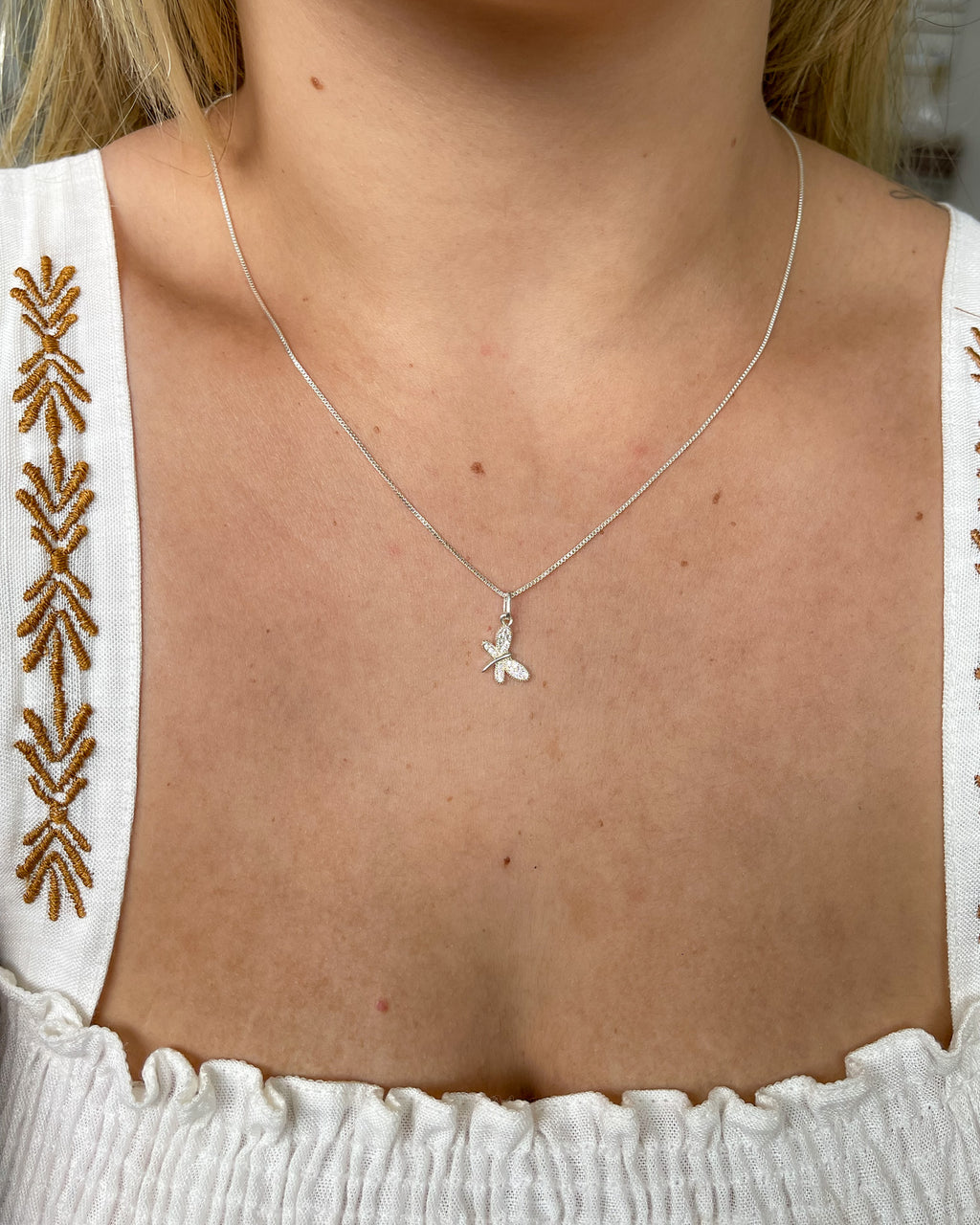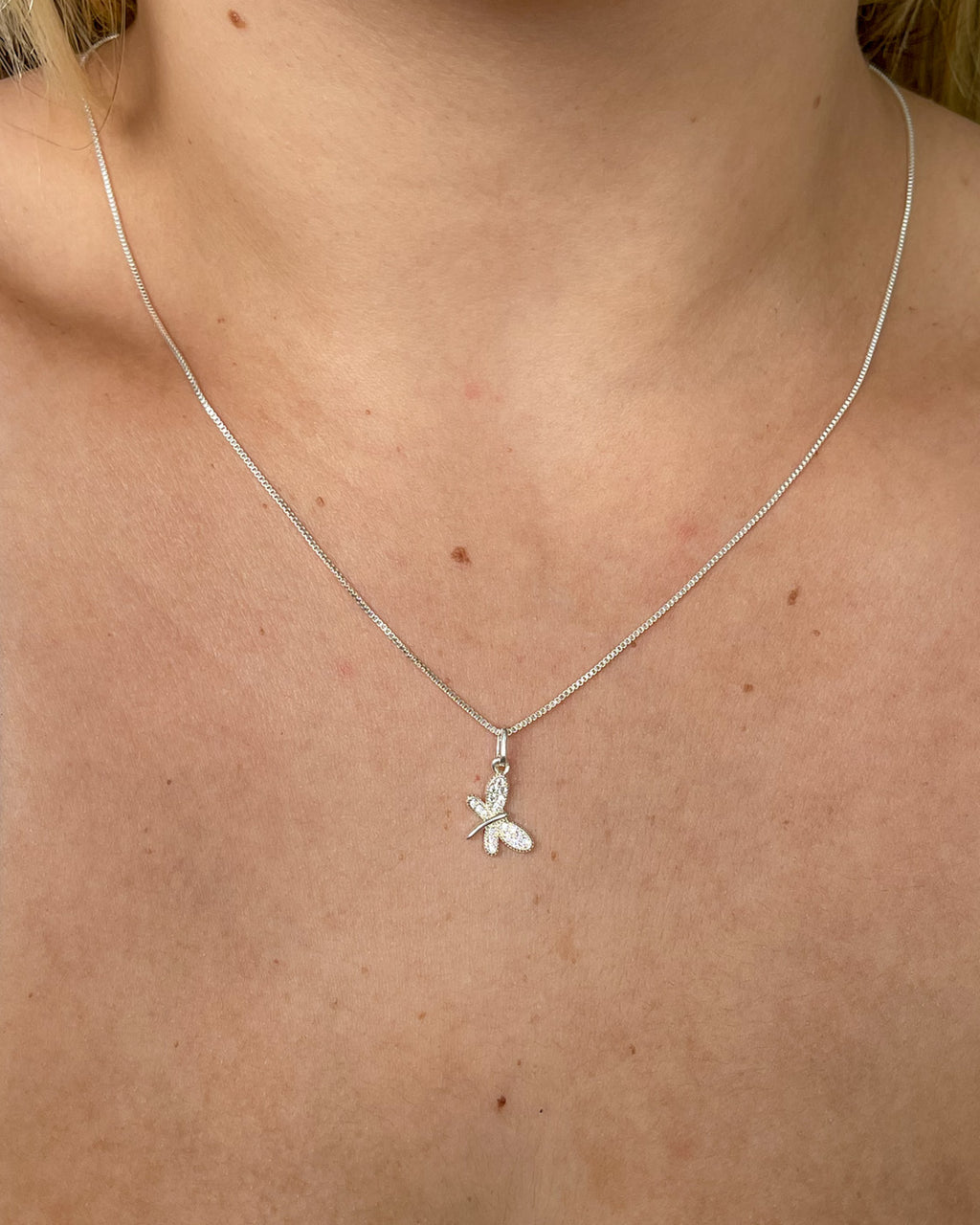 Colar Pingente Libélula Cravejada - Semijoia Banhado a Prata