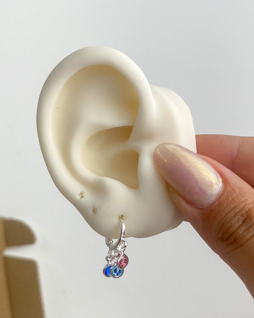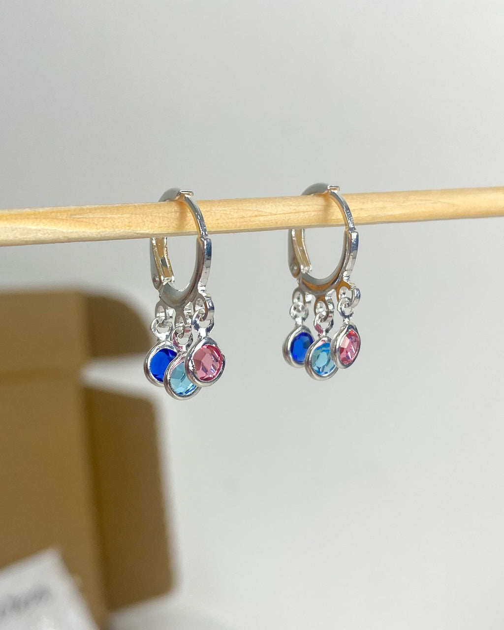 Argolinha com Pingente Zircônias Coloridas - Semijoia Banhado a Prata