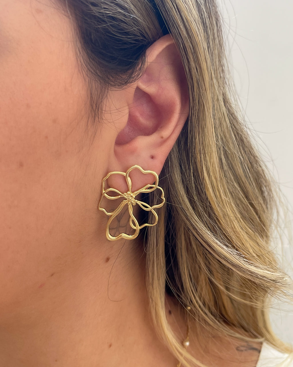 Brinco Flor Vazada Organic - Semijoia Banhado em Ouro 18k