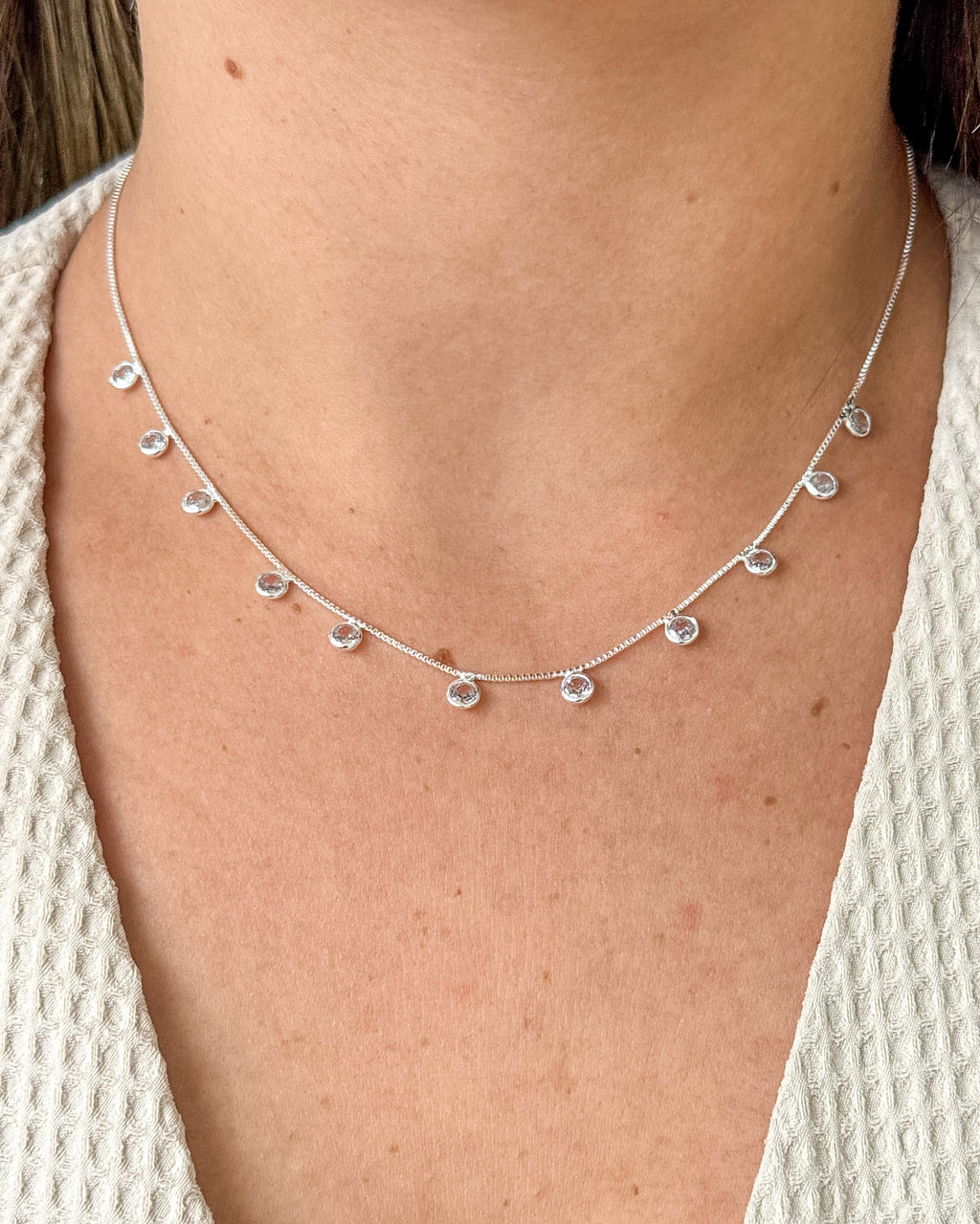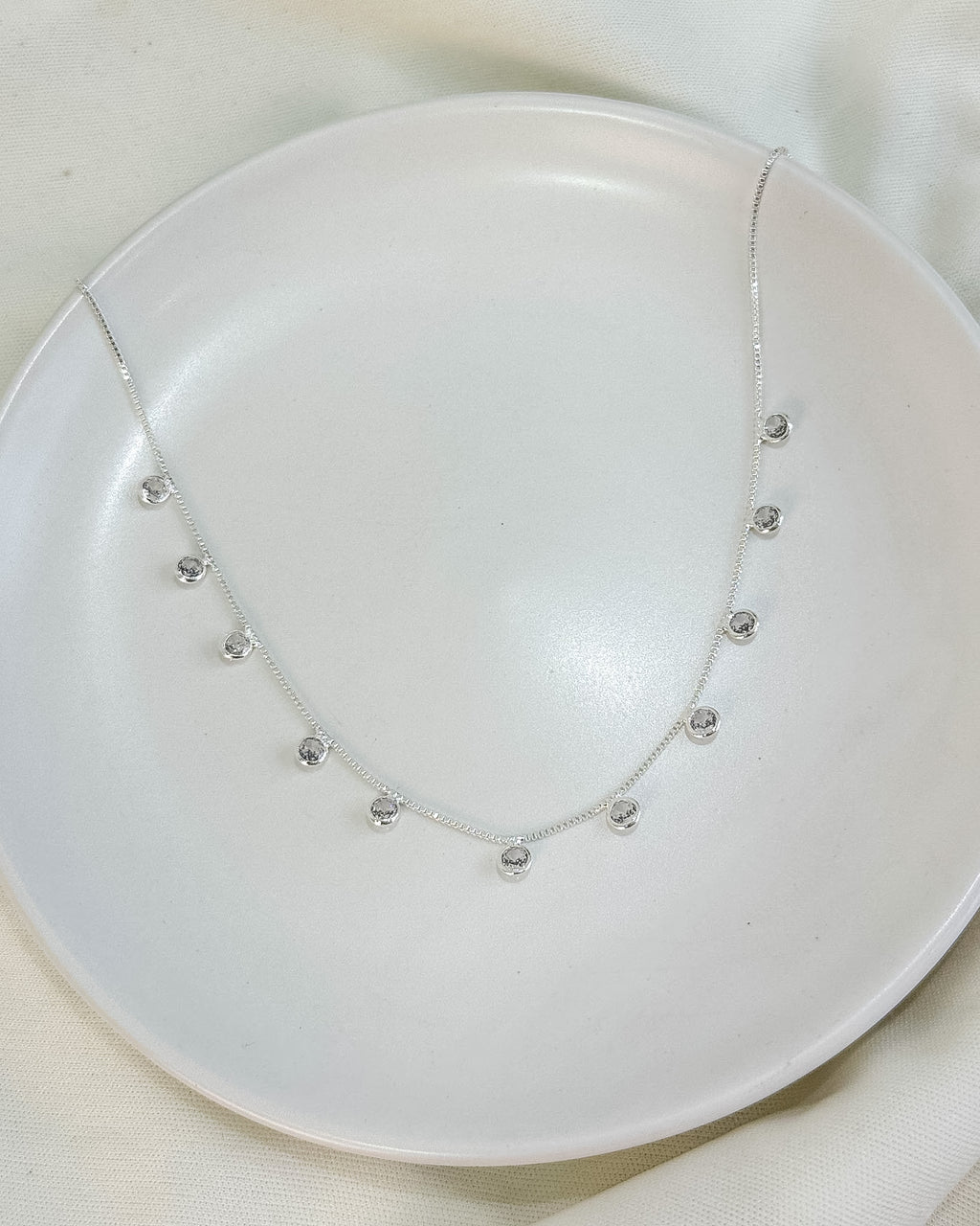 Colar Choker Pingentes Zircônia Pendurados - Semijoia Folheada a Prata