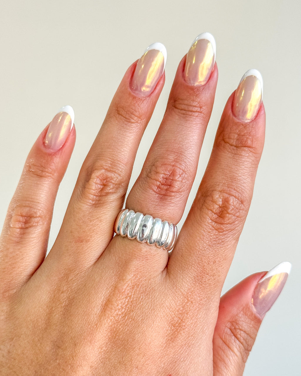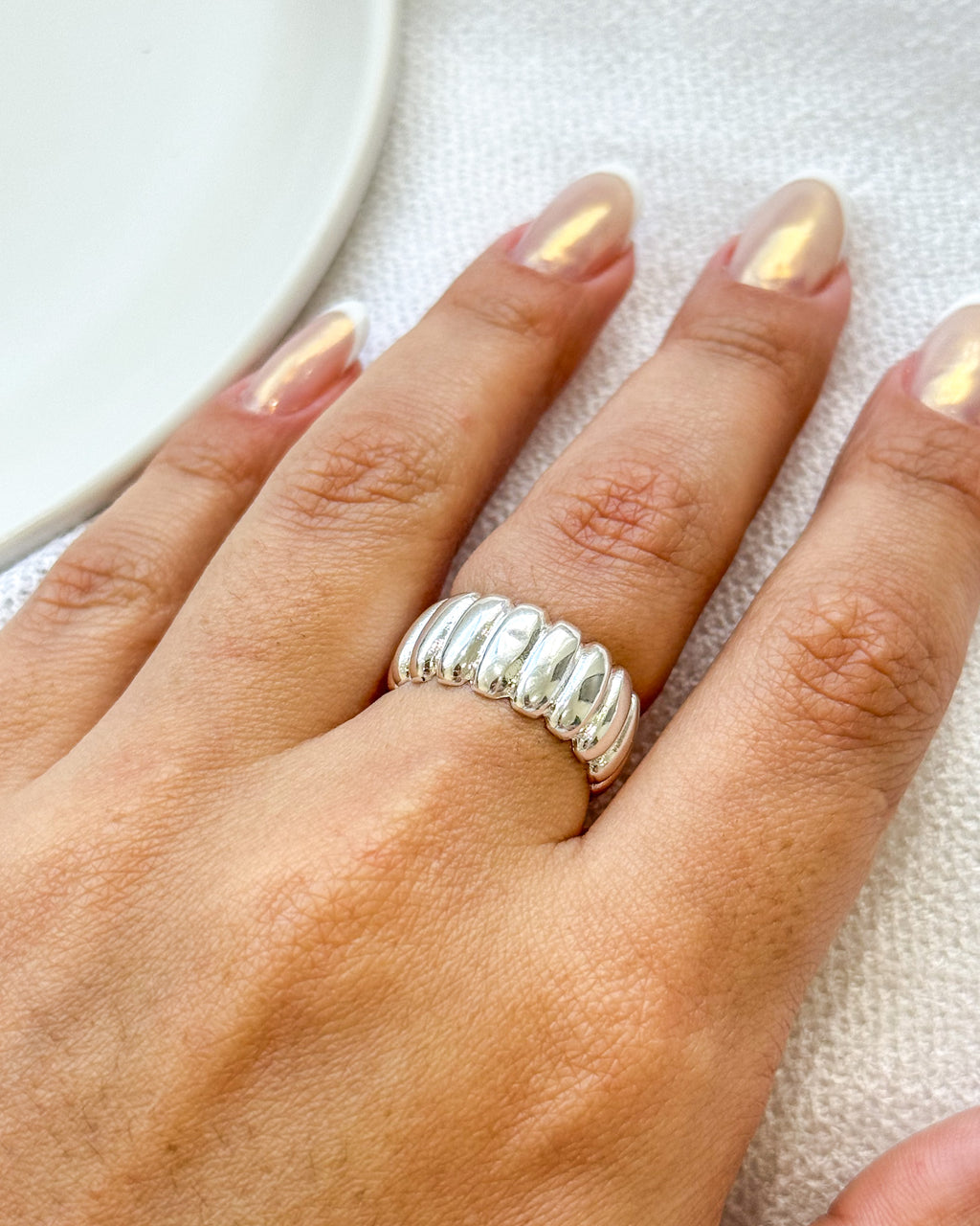 Anel Regulável Canelado Bold - Semijoia Banhado a Prata