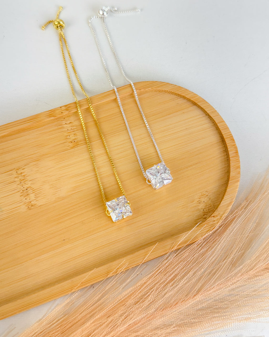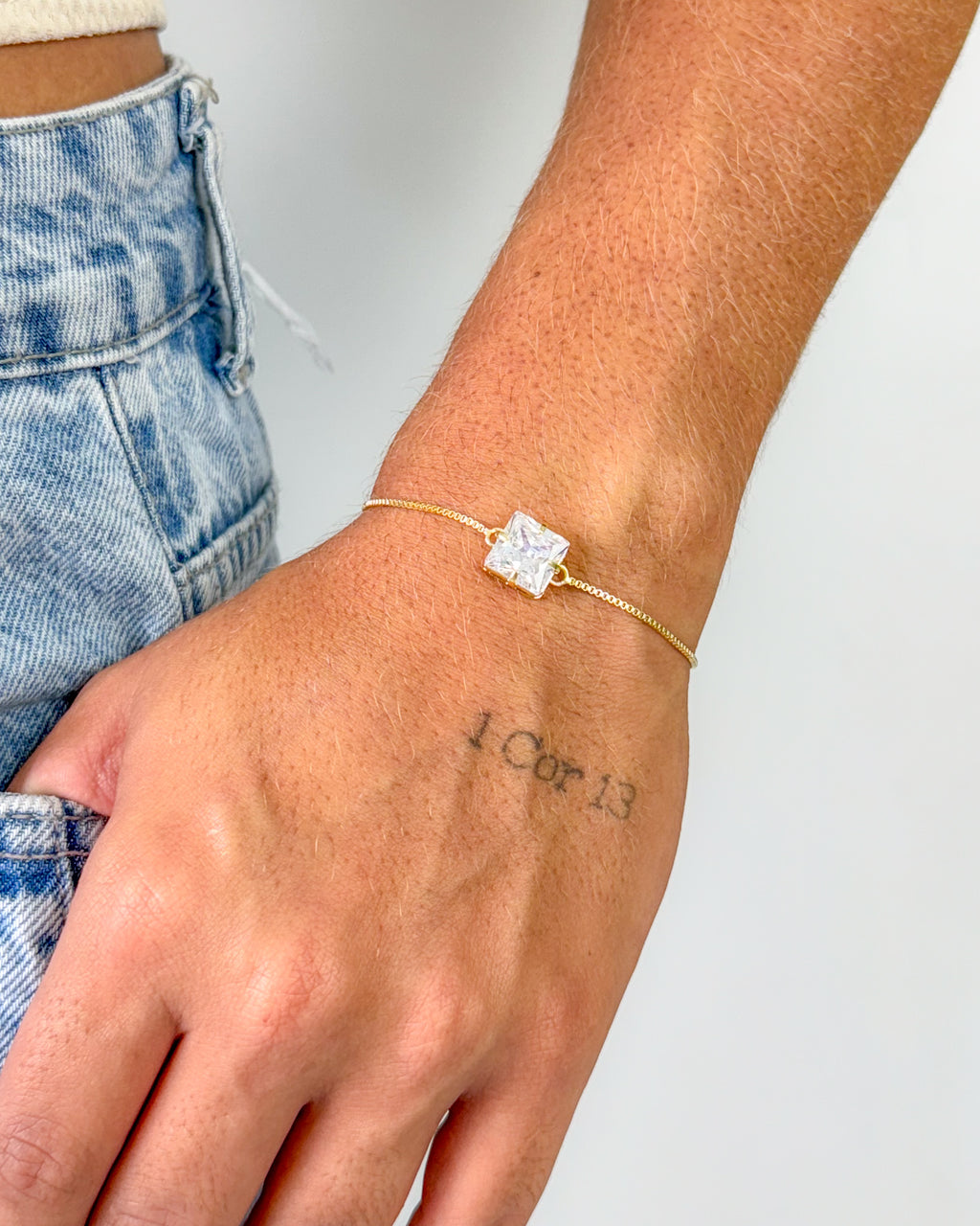 Pulseira Regulável Zircônia Quadrada - Semijoia Banhado em Ouro 18k