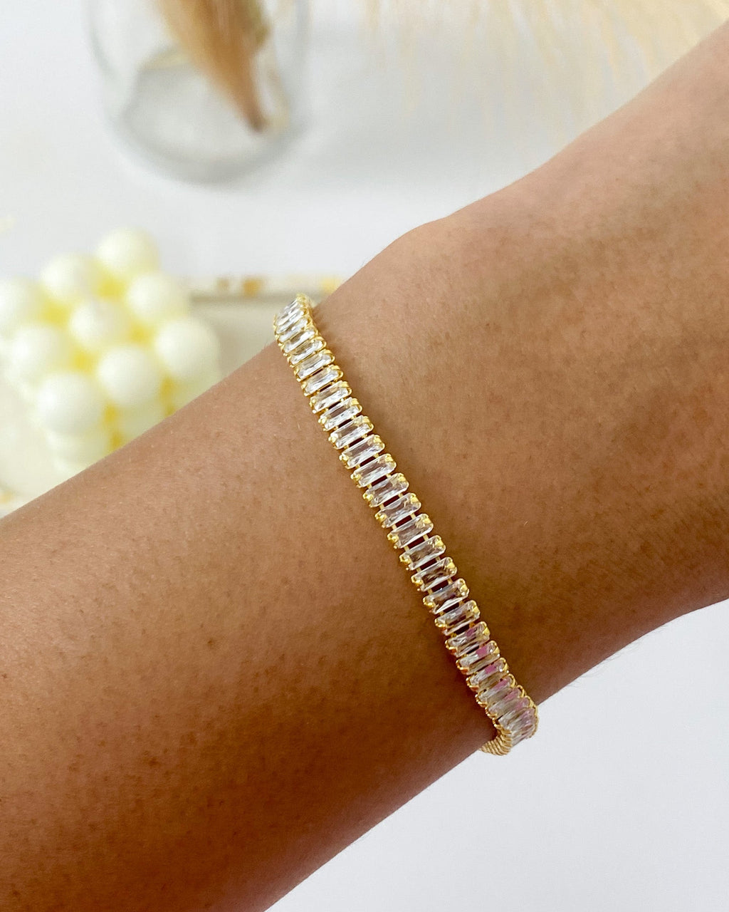 Pulseira Riviera Baguete Cristal - Semijoia Folheada a Ouro 18k