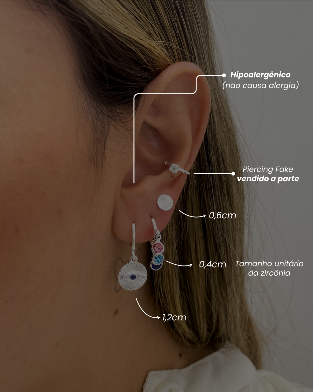 Trio de Brincos Medalha Olho Grego - Semijoia Banhado a Prata