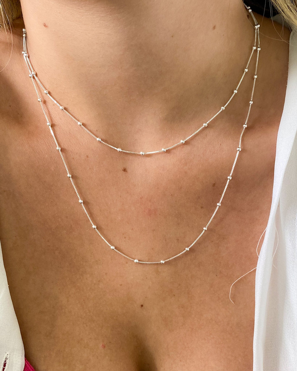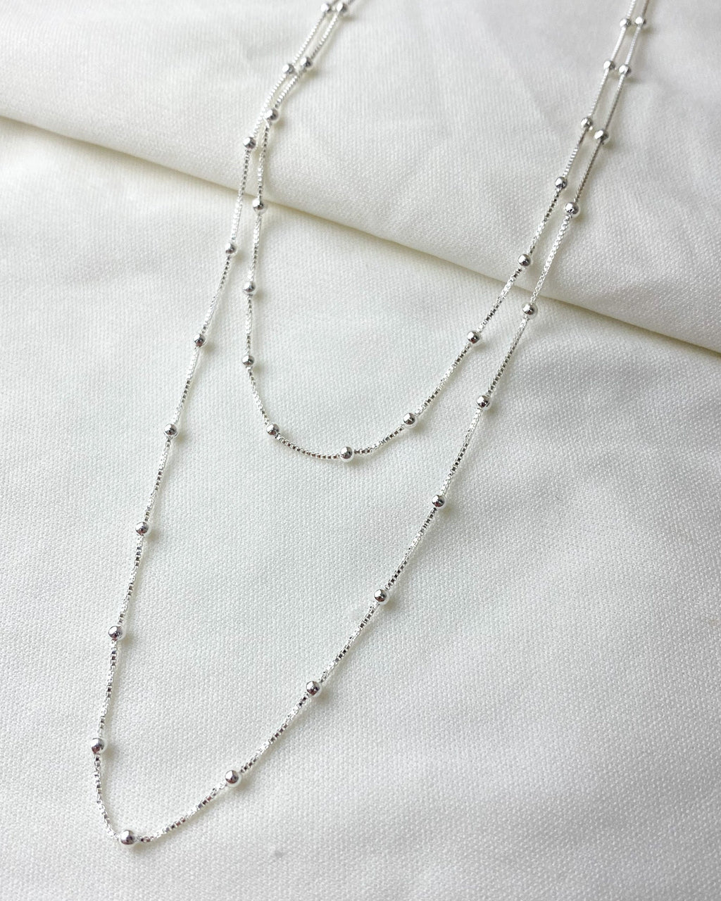 Colar Fio Duplo Bolinhas - Semijoia Folheada em Prata