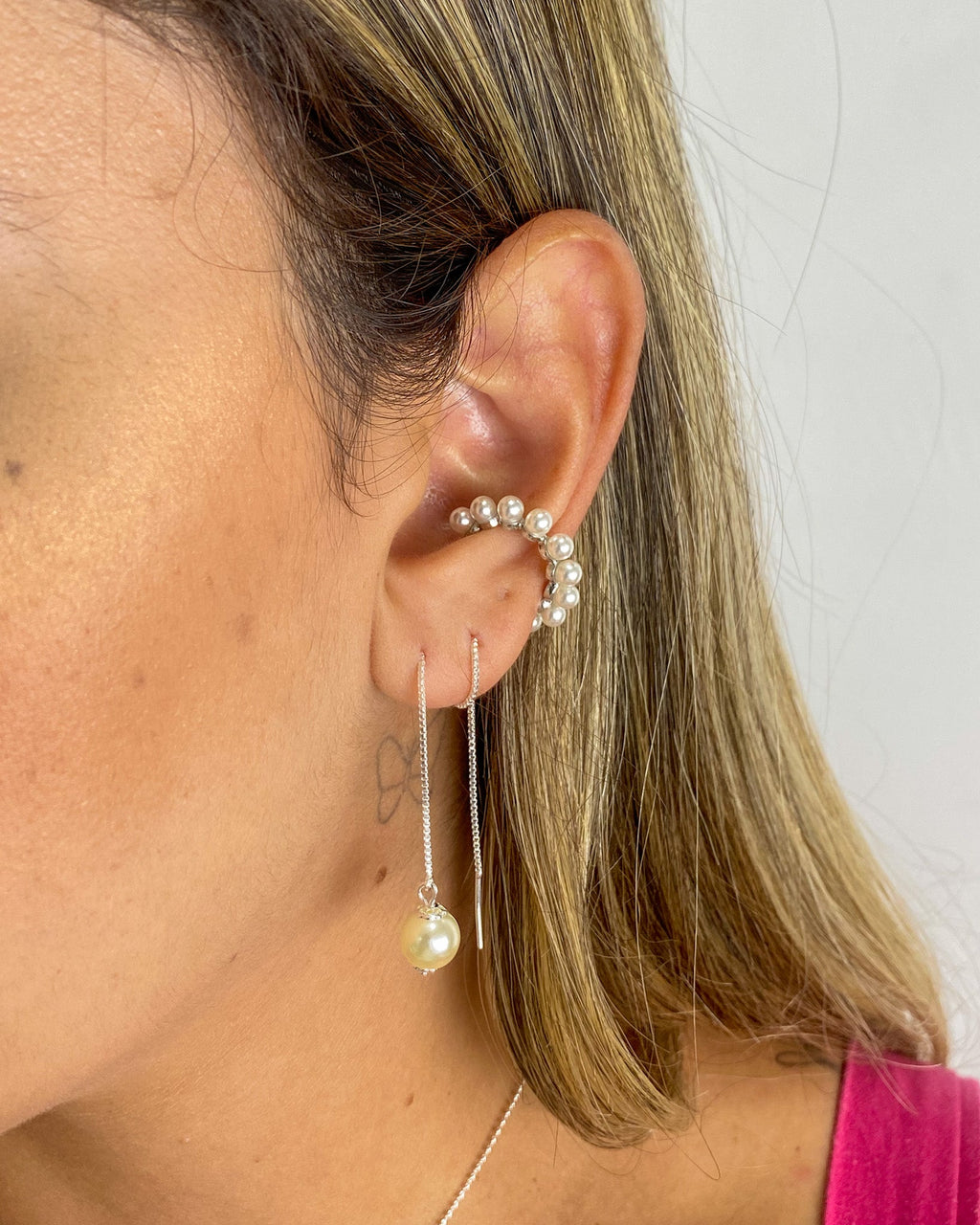 Brinco Agulha com Pérola - Semijoia Banhado a Prata