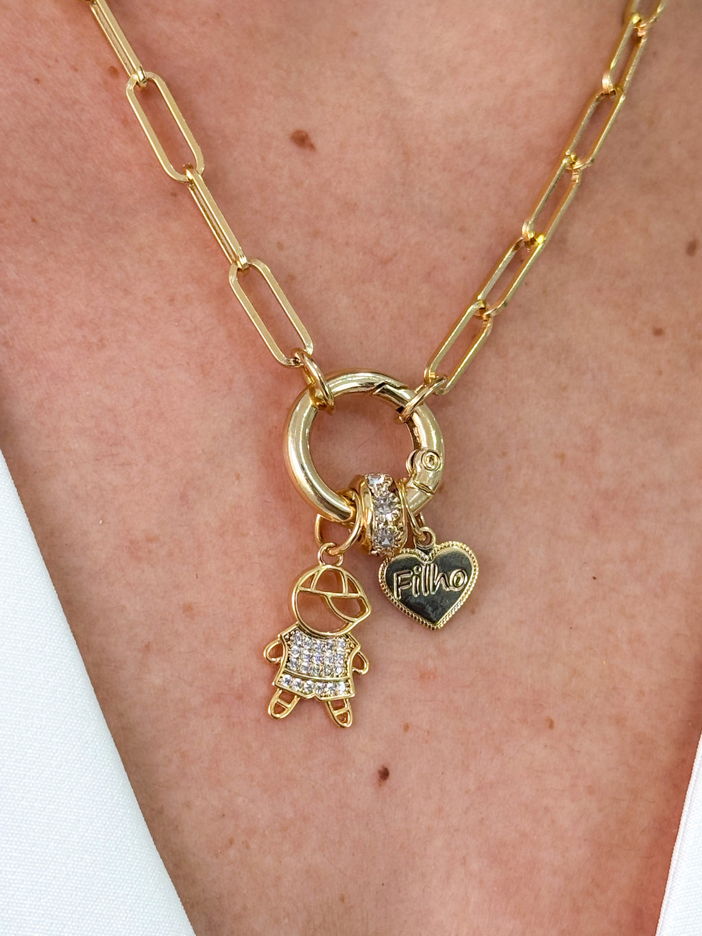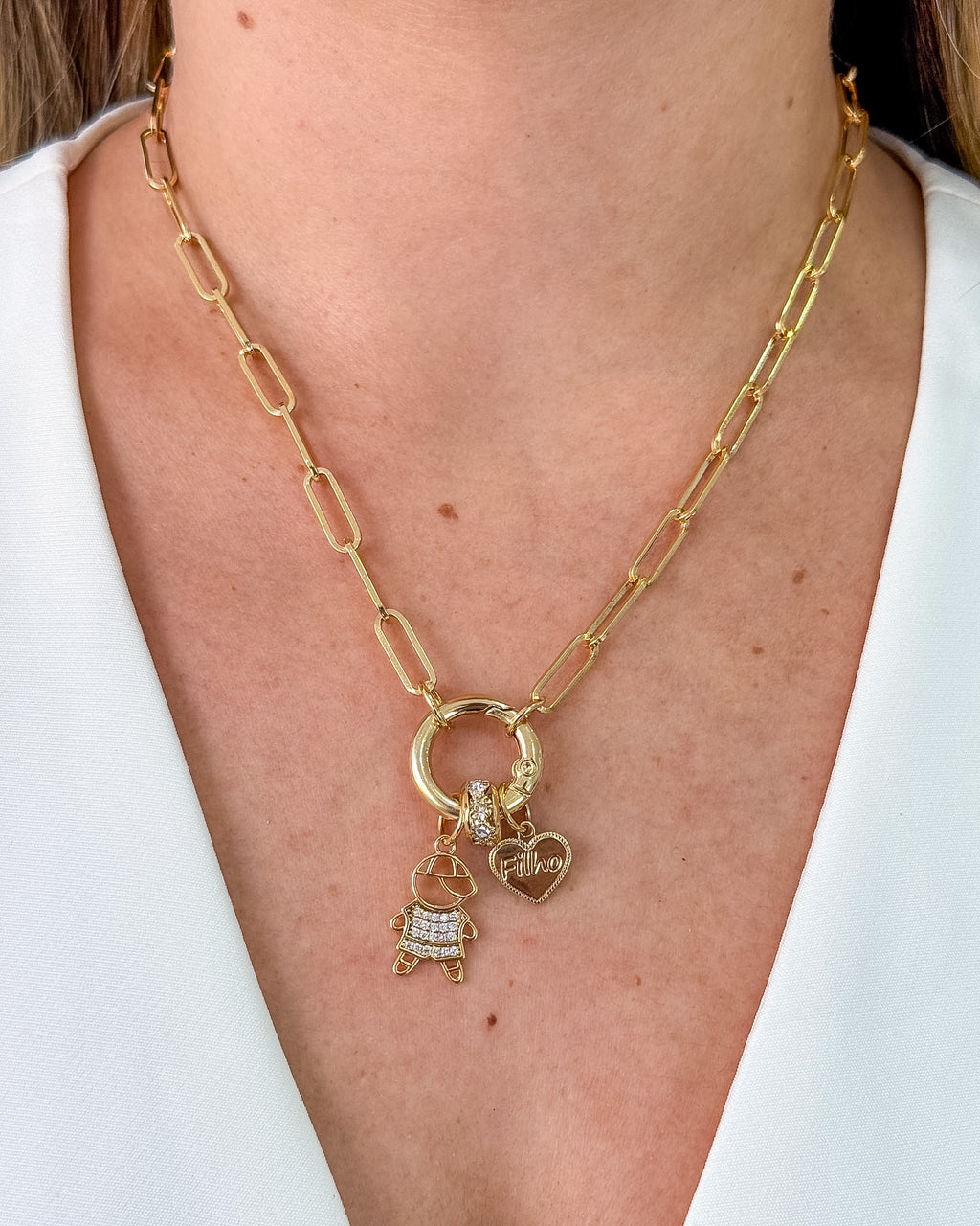Colar Fecho Boia com Pingente Filho - Semijoia Banhado em Ouro 18k