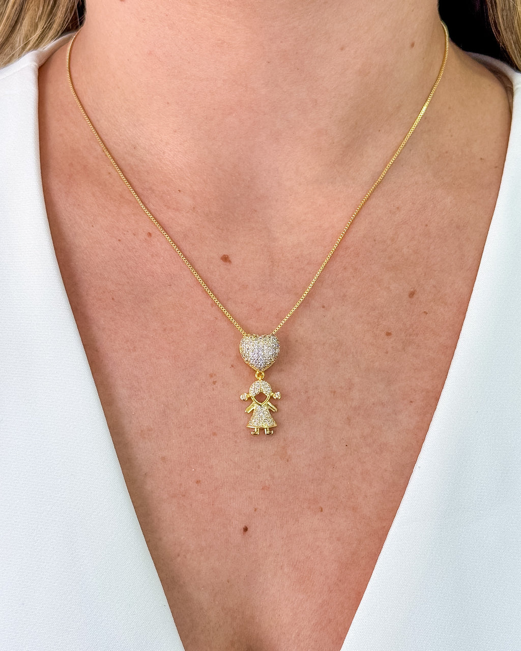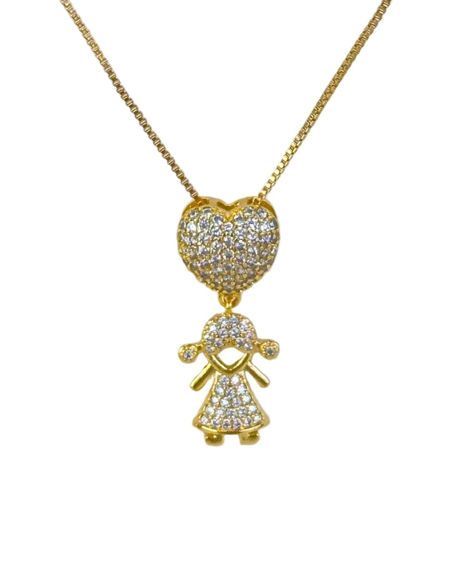 Colar Pingente Filha Coração Cravejado - Semijoia Banhado em Ouro 18k