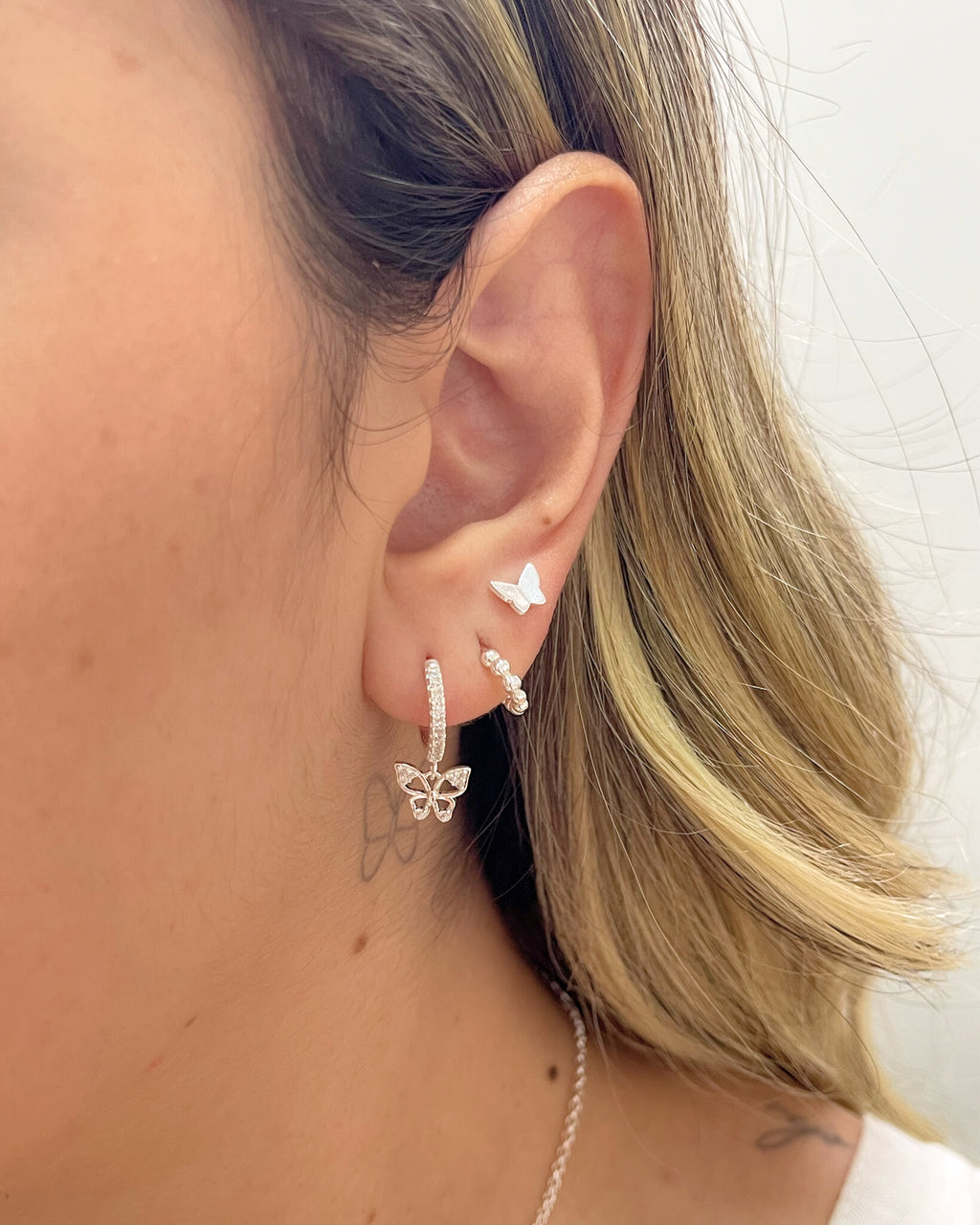 Trio Argola Borboleta Cravejada - Semijoia Banhado a Prata