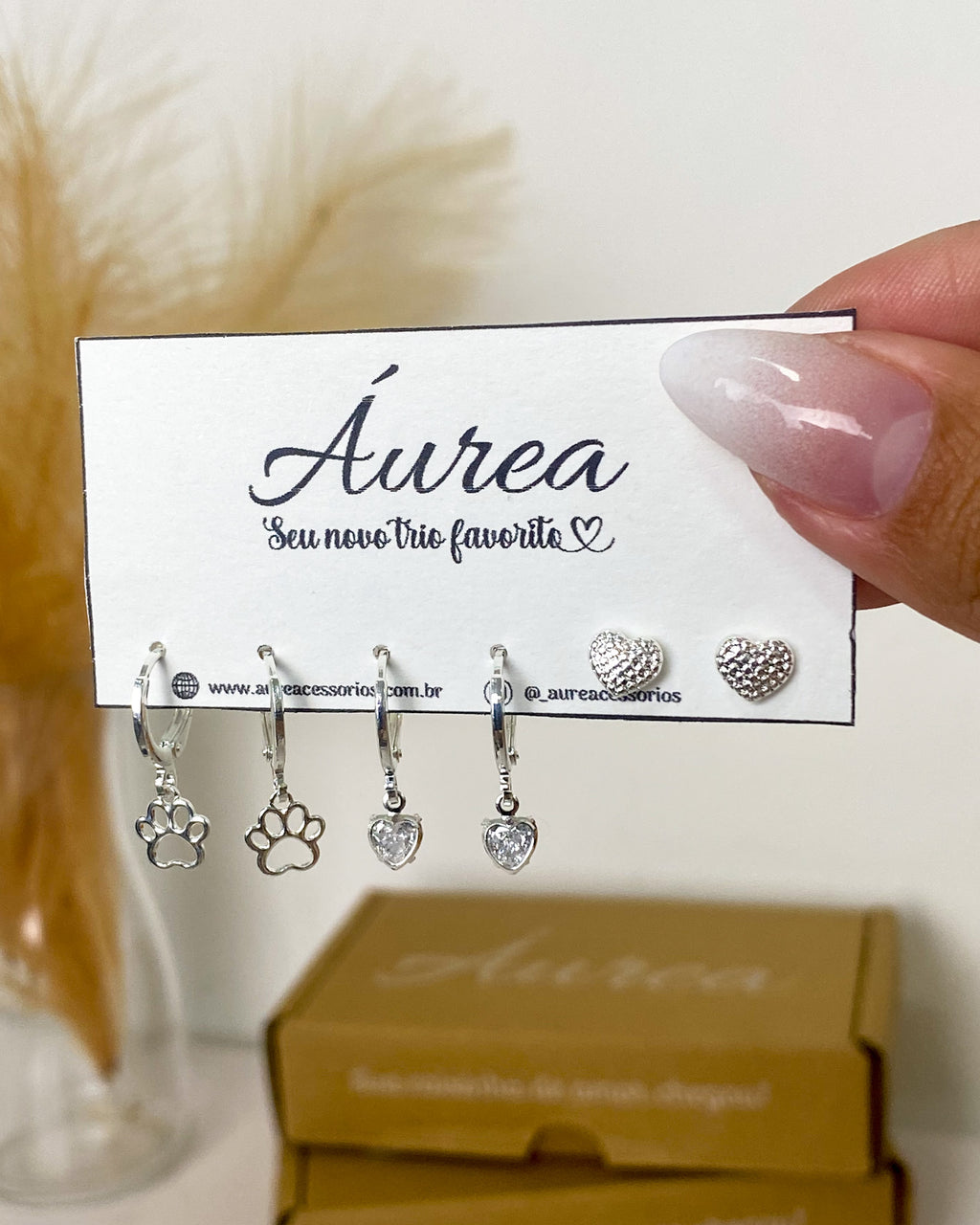 Trio de Brincos Amor de Pet - Semijoia Banhado a Prata