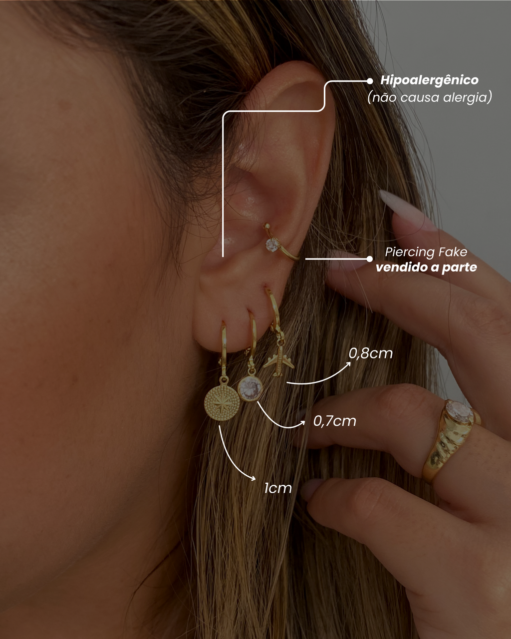 Trio de Argolas Avião - Semijoia Banhado em Ouro 18k