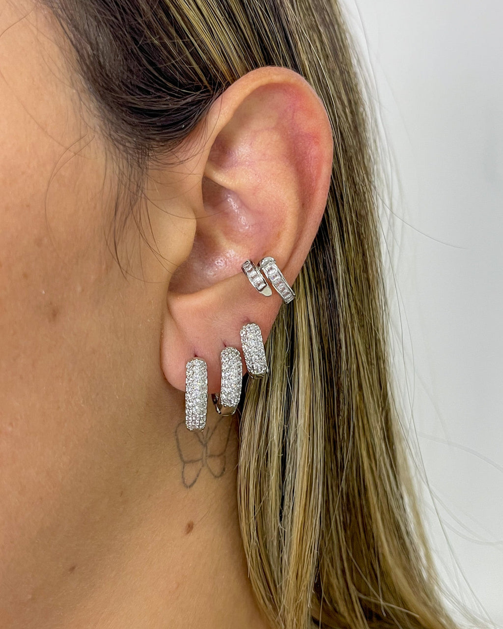 Trio de Argolas Bold Cravejado - Semijoia Folheada em Prata