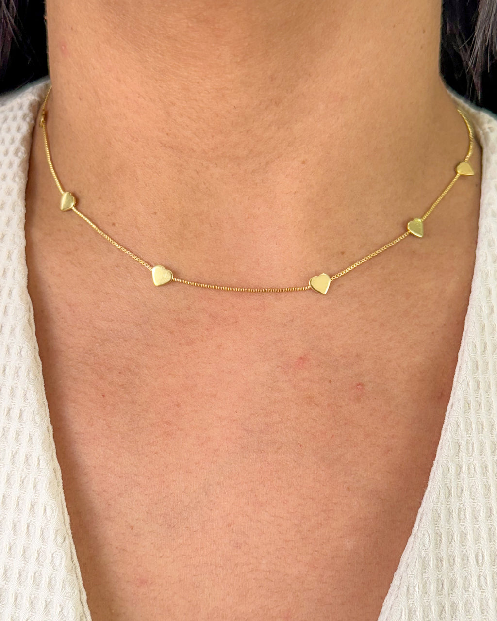 Colar Corações Fixos - Semijoia Banhado em Ouro 18k