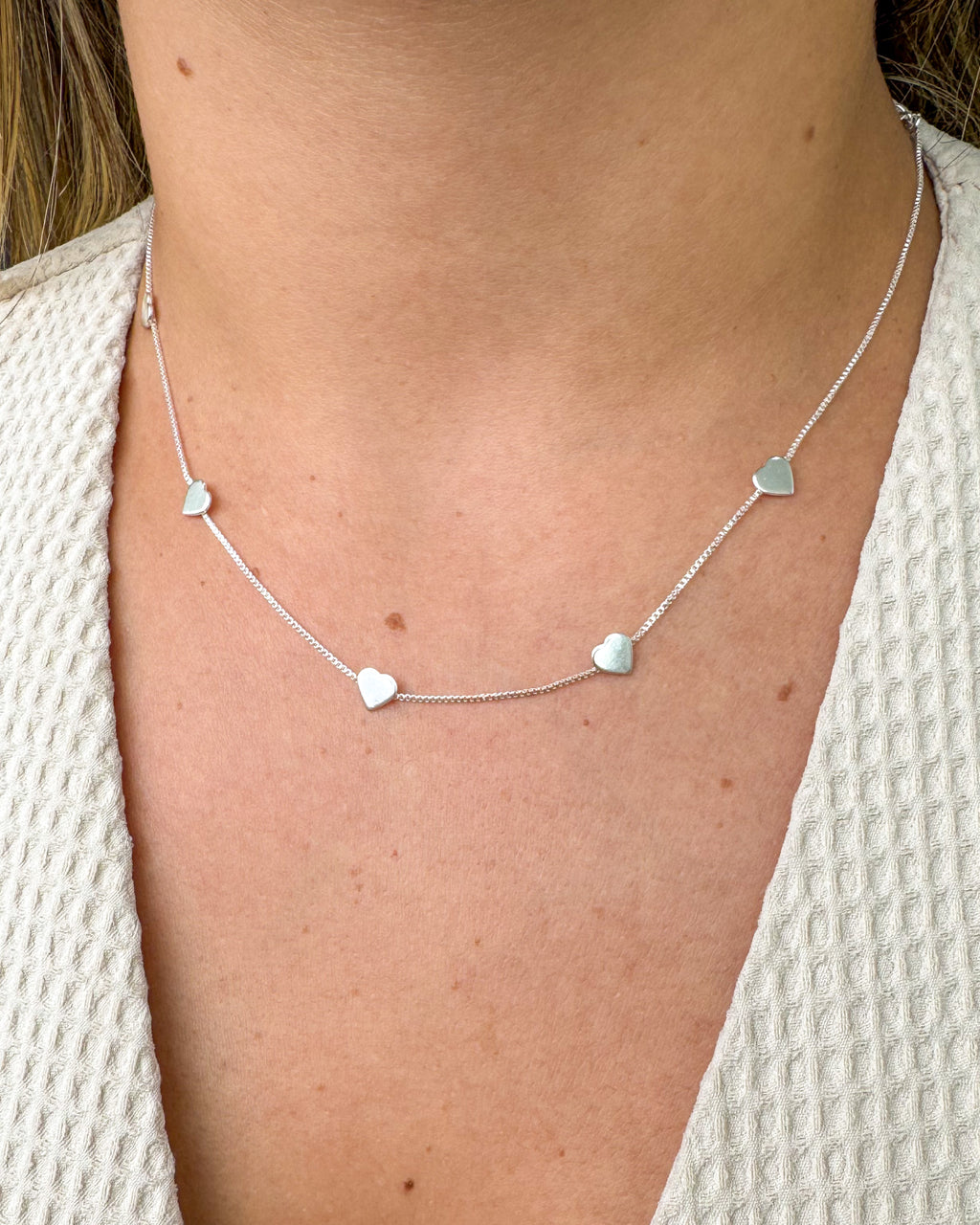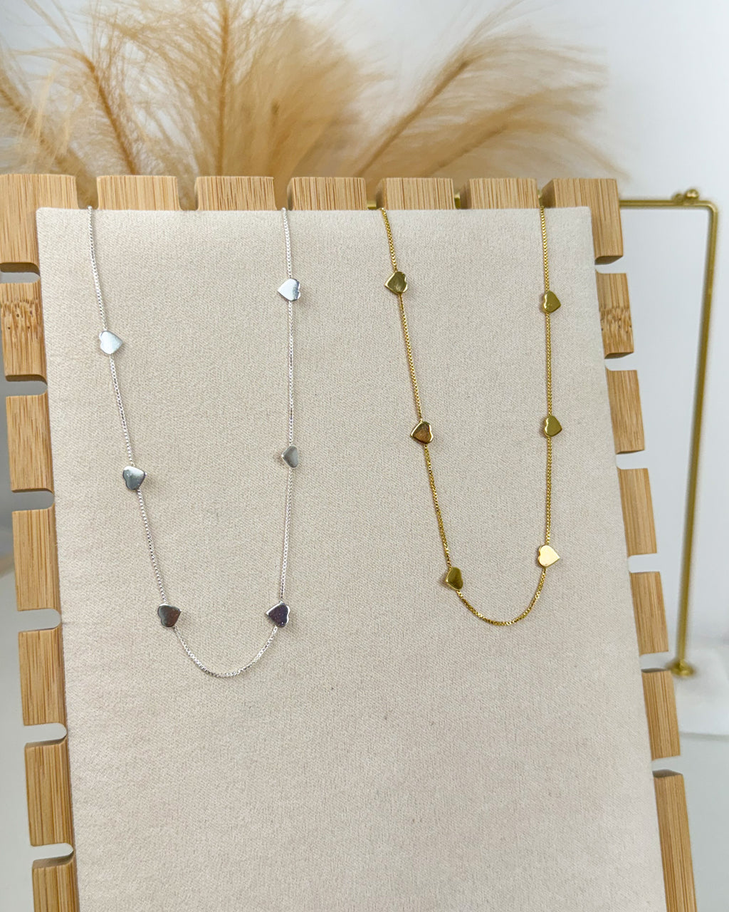 Colar Corações Fixos - Semijoia Banhado a Prata