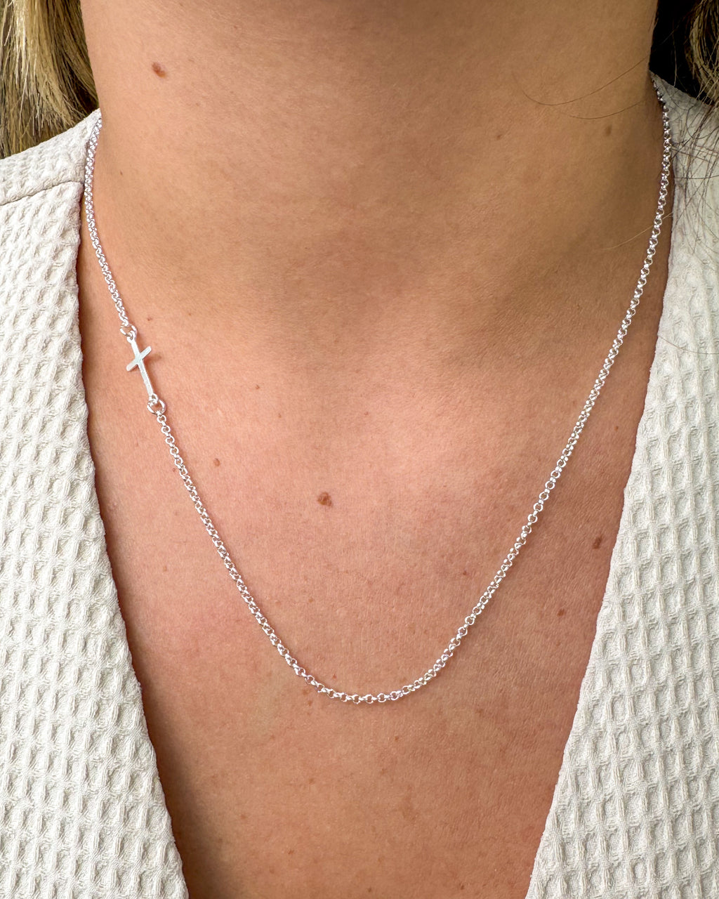 Colar Detalhe Cruz Lateral - Semijoia Folhada a Prata