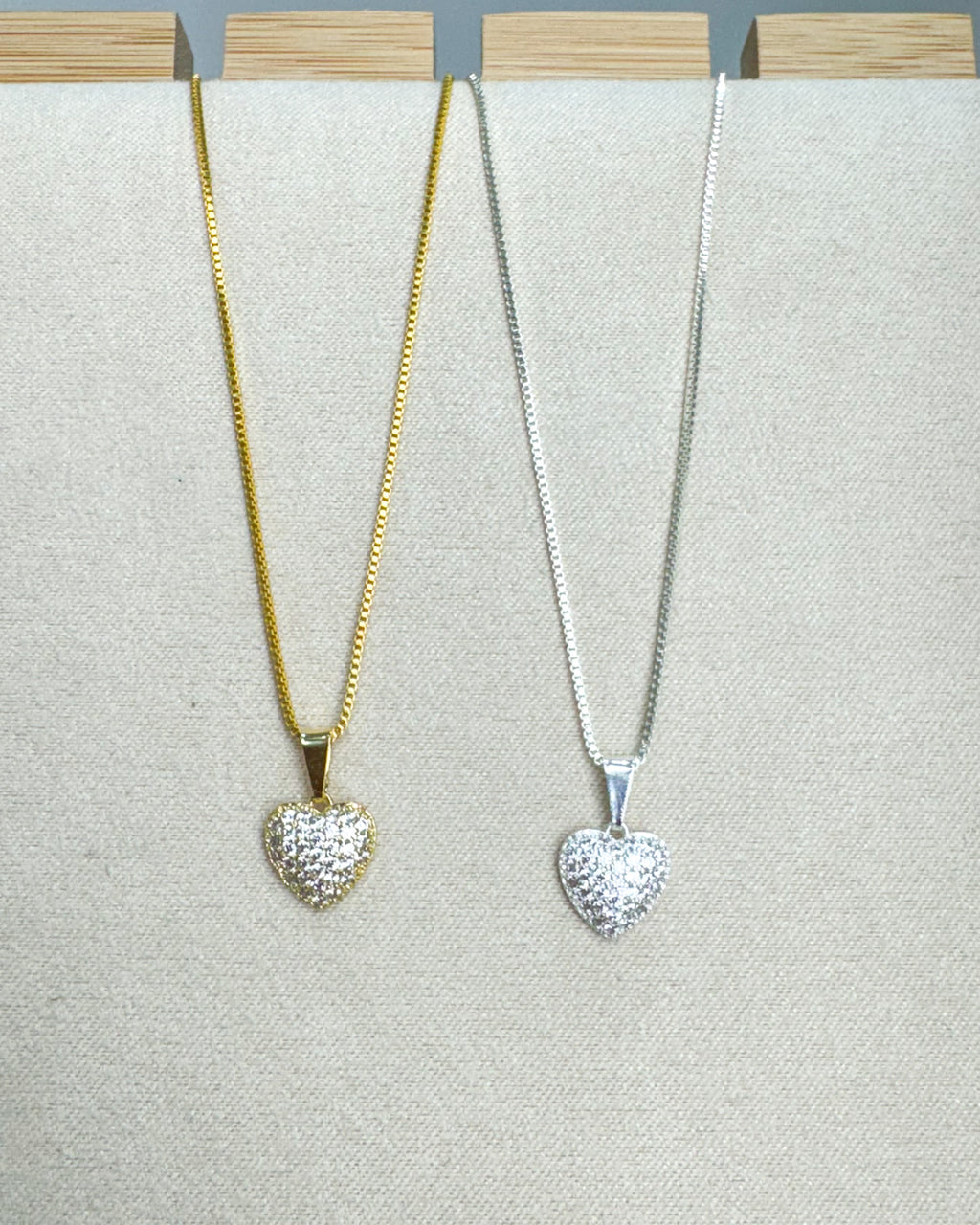 Colar Pingente Coração Cravejado - Semijoia Banhado em Ouro 18k