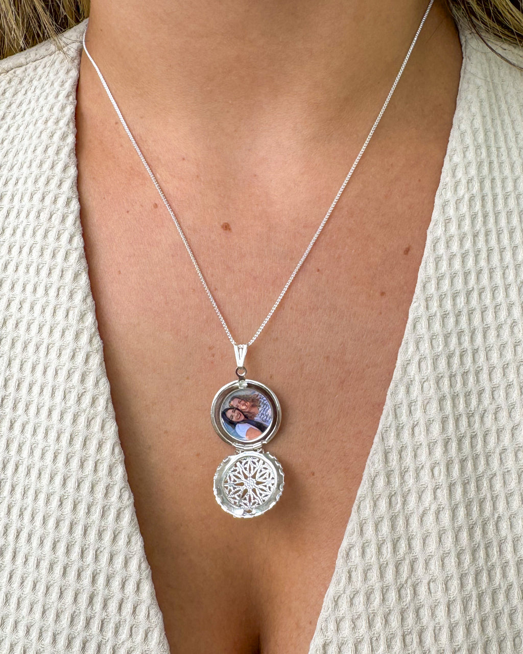 Colar Relicário Redondo + Foto Personalizada - Semijoia Banhado a Prata